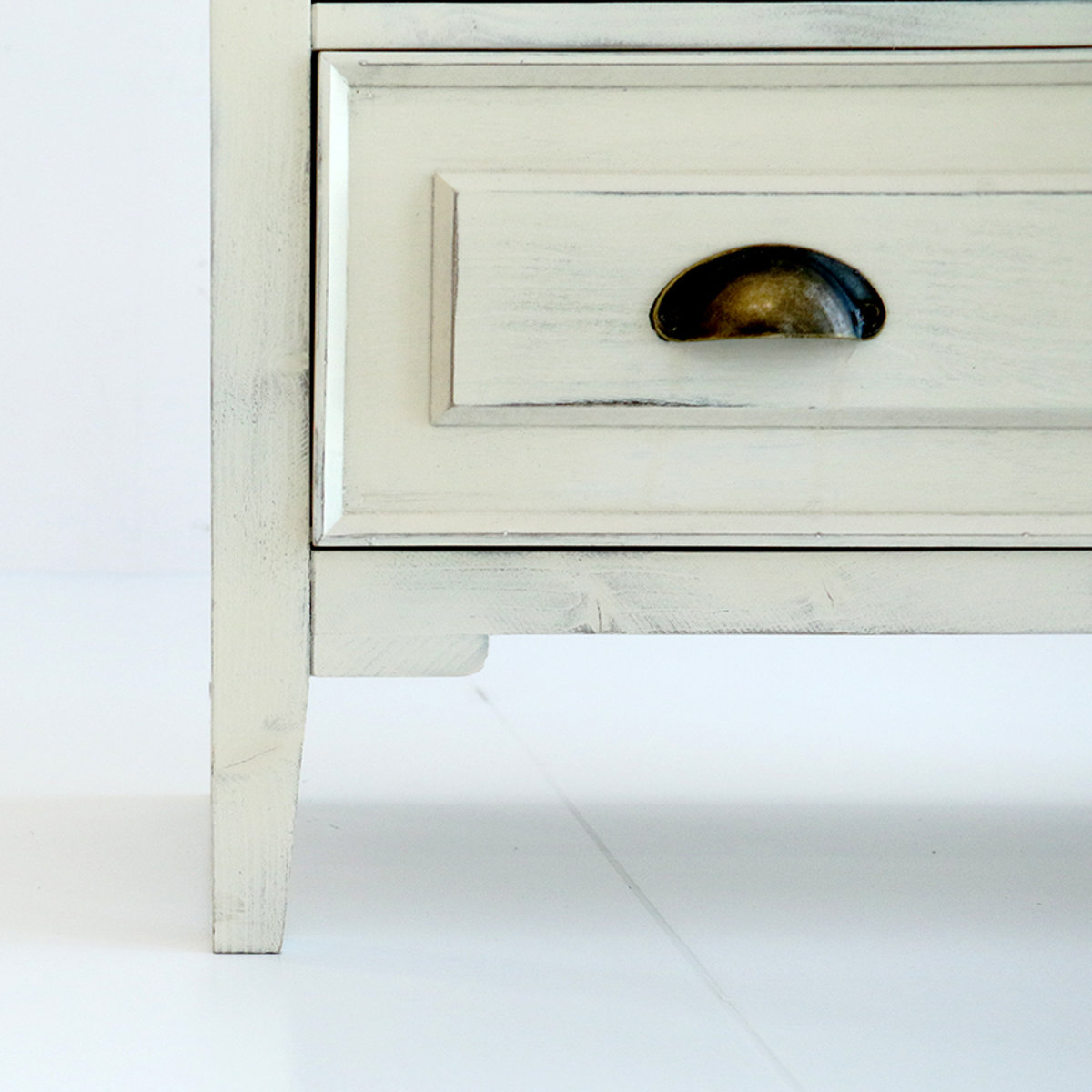 シャビー加工を施し、使い古したようなアンティークな風合いに仕上げています。白過ぎないナチュラルな色味でどこか懐かしさや温かみを感じられます。