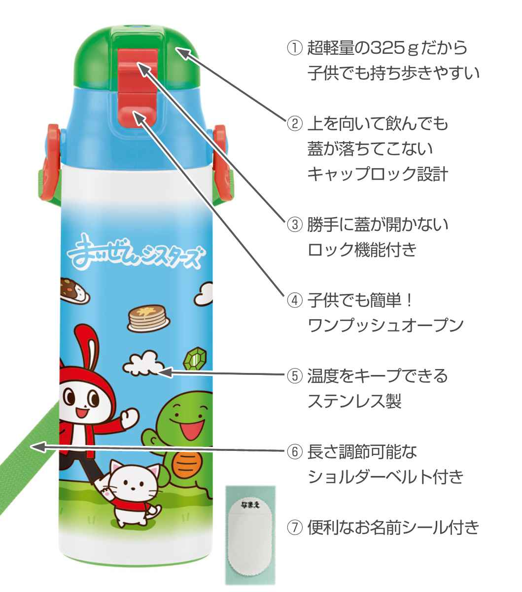 水筒 キッズ 580ml ステンレス 直飲み ダイレクトボトル まいぜんシスターズ ( マイゼンシスターズ 保冷 ステンレスボトル ワンプッシュ 子供 直のみ 軽量 ワンタッチボトル キッズボトル ワンタッチ 幼稚園 保育園 )