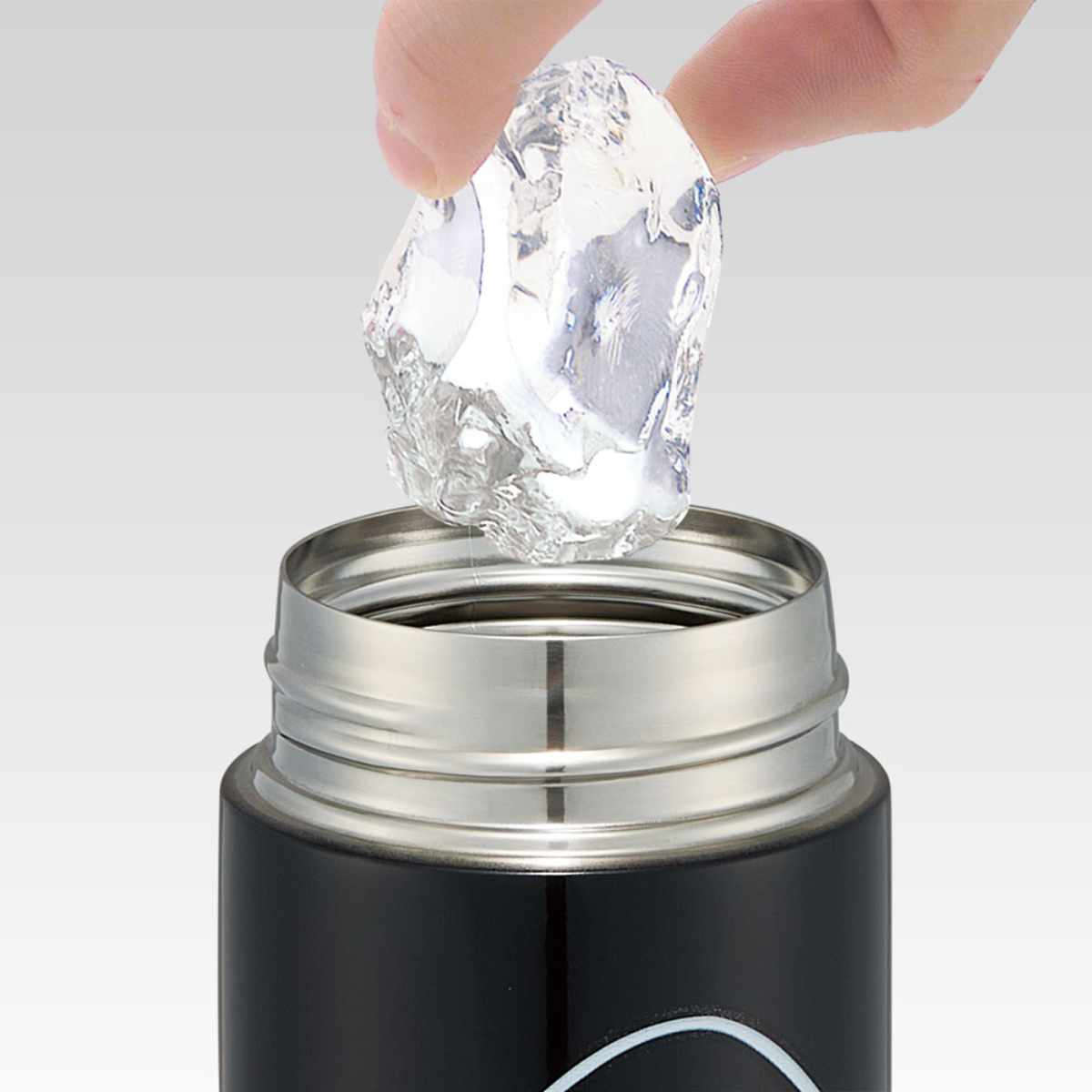 水筒の口は広口なので大きな氷も入れやすくなっています。また、お手入れの際もしっかり洗えて衛生的です。