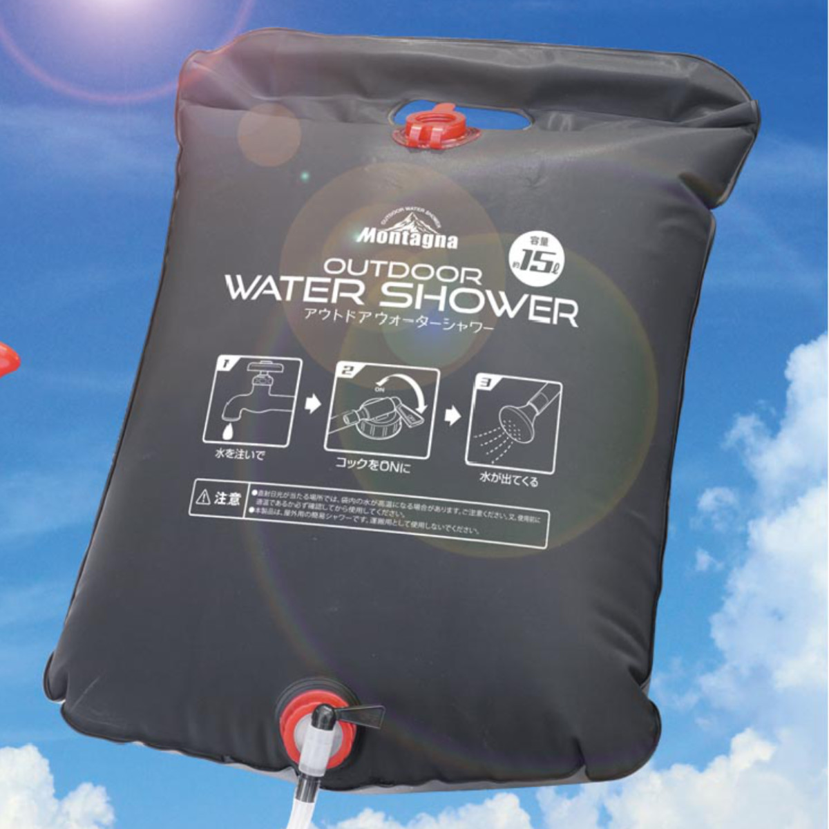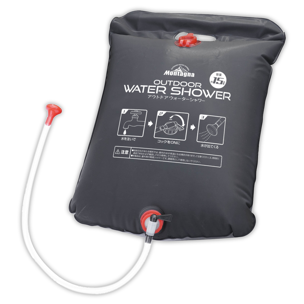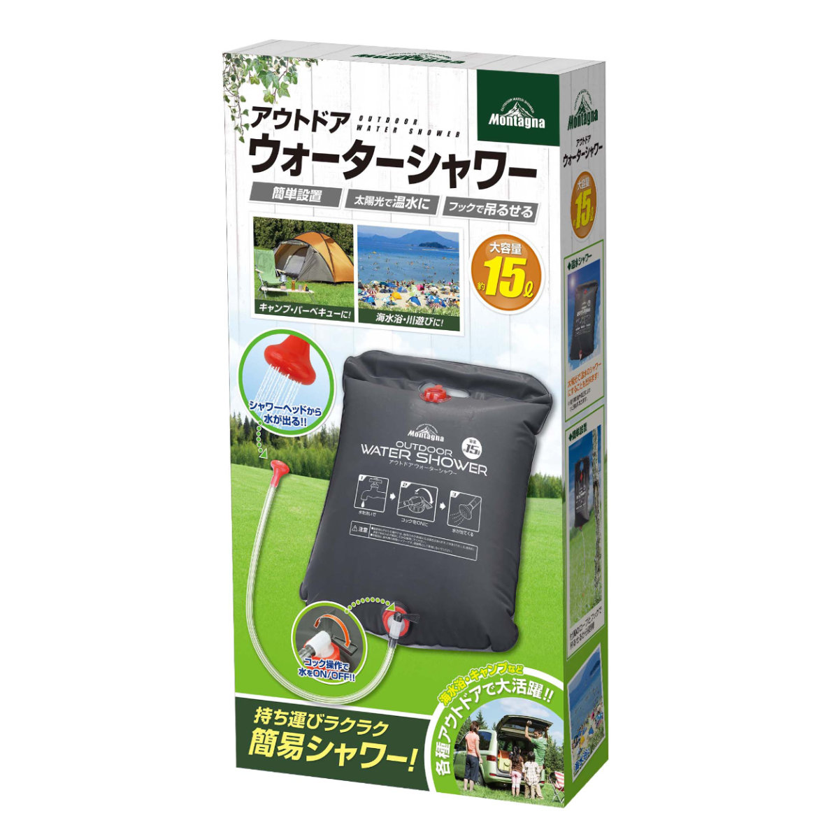 ポータブルシャワー 15L アウトドアウォーターシャワー ( モンターナ MONTAGNA 簡易シャワー 携帯シャワー ウォーターシャワー 大容量 電源不要 電気不要 シャワー 海水浴 川遊び 釣り アウトドア キャンプ サーフィン )