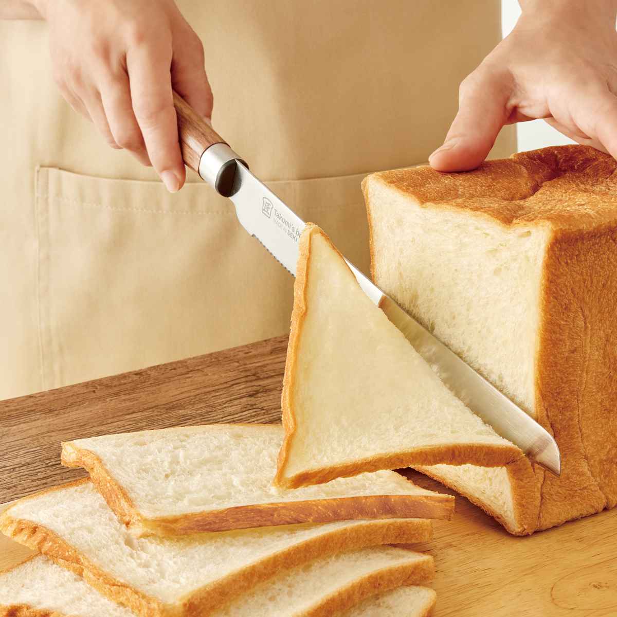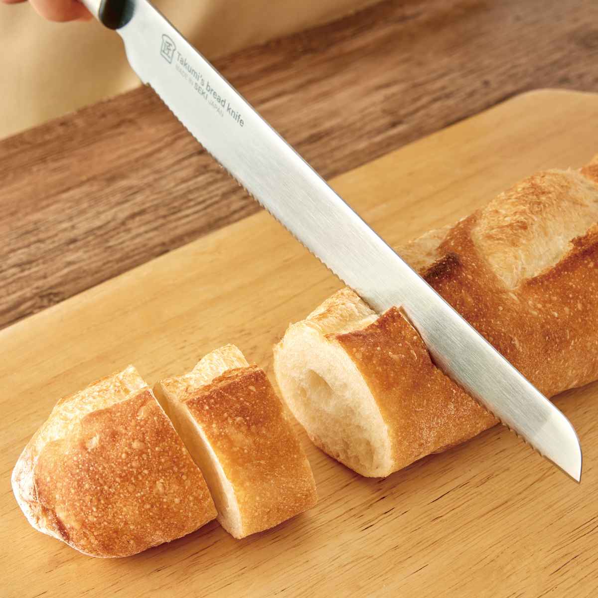 先端のストレート刃でパンの耳まで残さずきれいに切り落とせます。