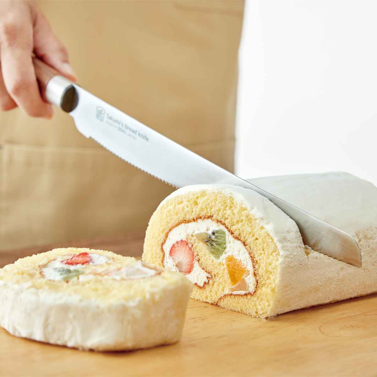 刃全体が緩やかなカーブ形状になっているので、余分な力が要らず、スムーズに切ることができます。バケットのような硬いパンからフルーツサンドや具沢山のサンドウィッチ、トマトやローストビーフなど幅広く使っていただけます。