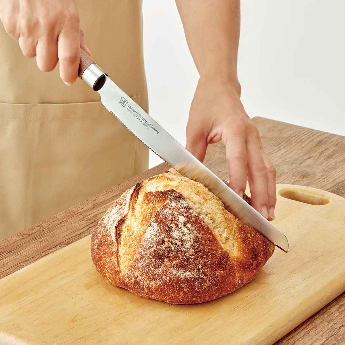 品質の良い刃物を製造する都市として知られている、岐阜県関市の老舗工場で製造されたパン切りナイフです。ふわふわの柔らかい食パンも断面をつぶさずに薄くキレイに切ることができます。