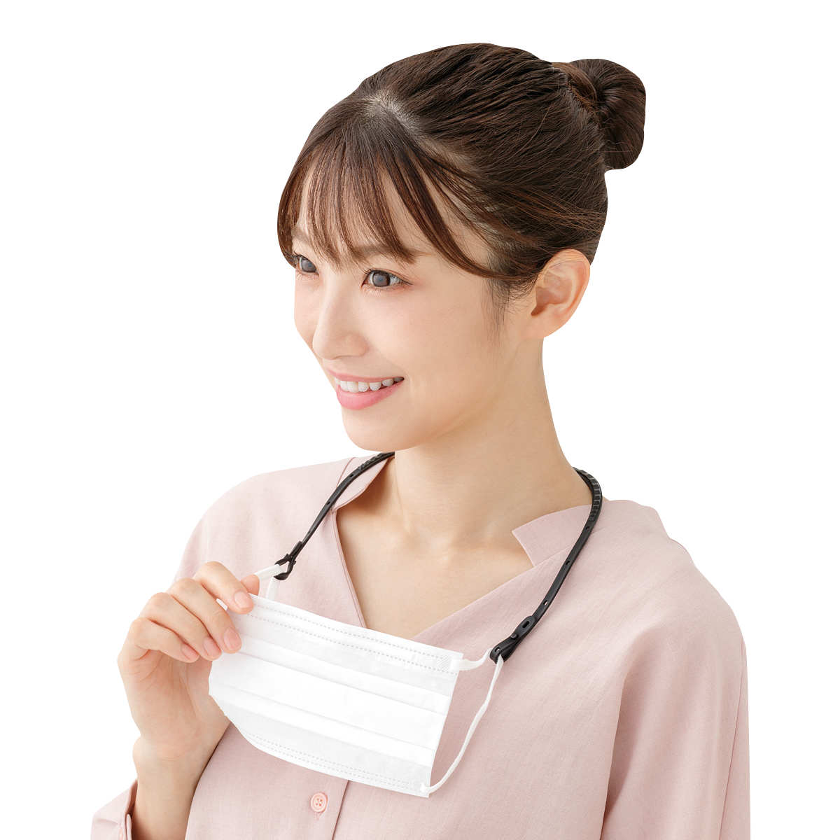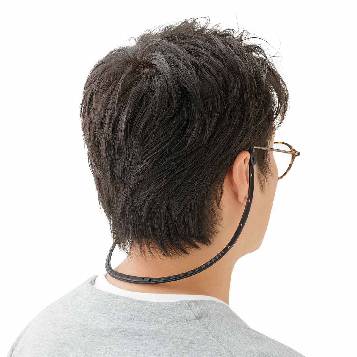 マスクや眼鏡に簡単に装着でき、約10gの軽量設計なので、つけても軽くて気になりません。また肌にやさしいシリコン製は、汗や水を気にせず使え、男性の方も女性の方も使えるように長さが調節できるようになっています。