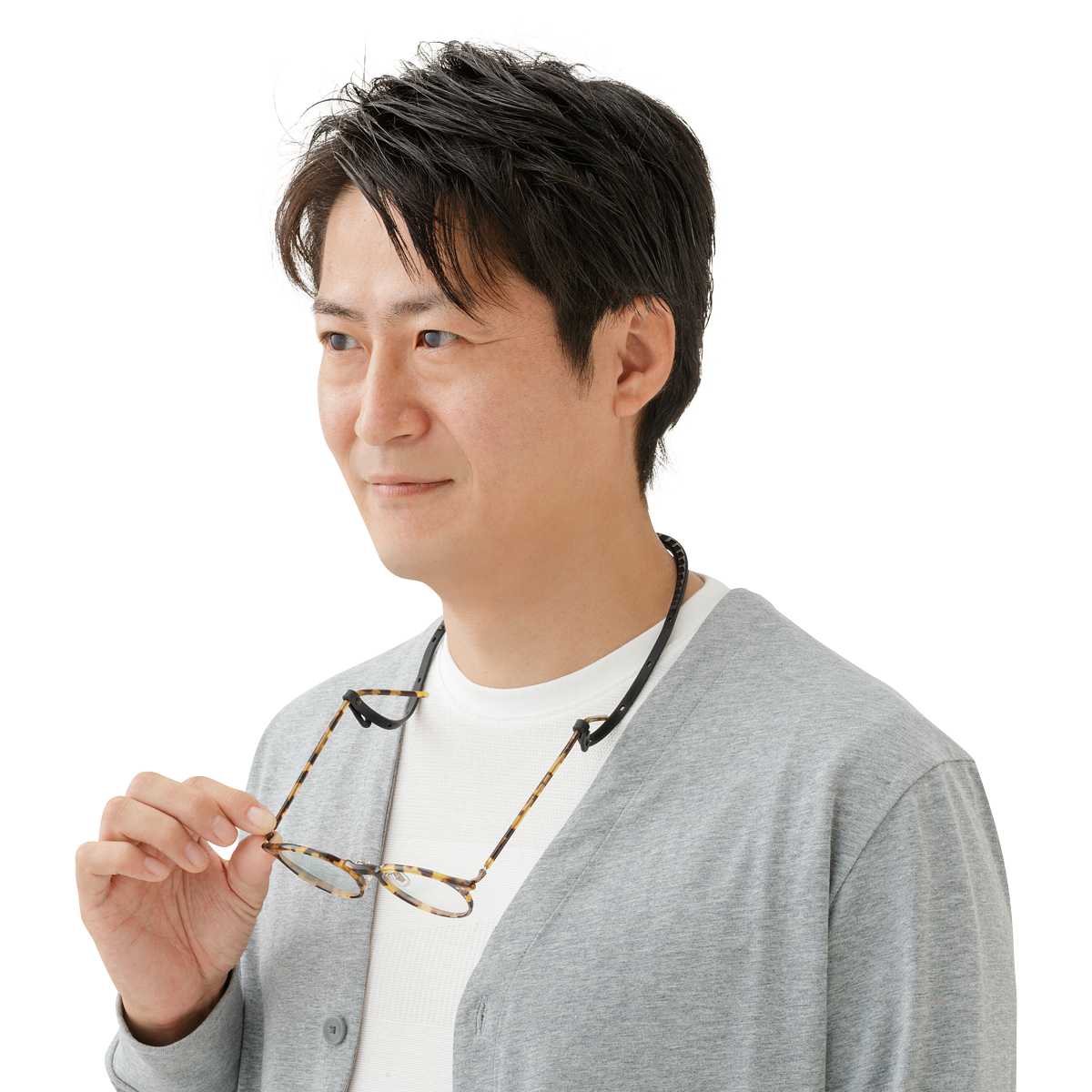 眼鏡やマスクに簡単に装着できる、管理医療機器最大磁束200mTの磁石を使用したストラップです。強力パワーで血行を良くして装着部位のコリを改善します。