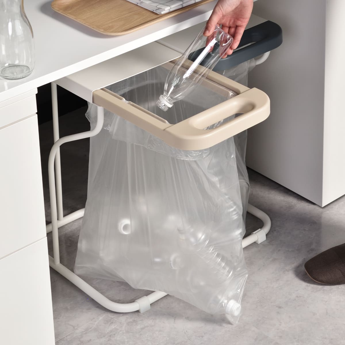ゴミ箱 45L 幅26cm リサイクルスタンド ( ごみ箱 45リットル スライド ふた付き レジ袋スタンド 分別 スリム ゴミ袋スタンド ダストボックス 取っ手付きゴミ袋 ゴミ袋 スタンド ) 【グレージュ】