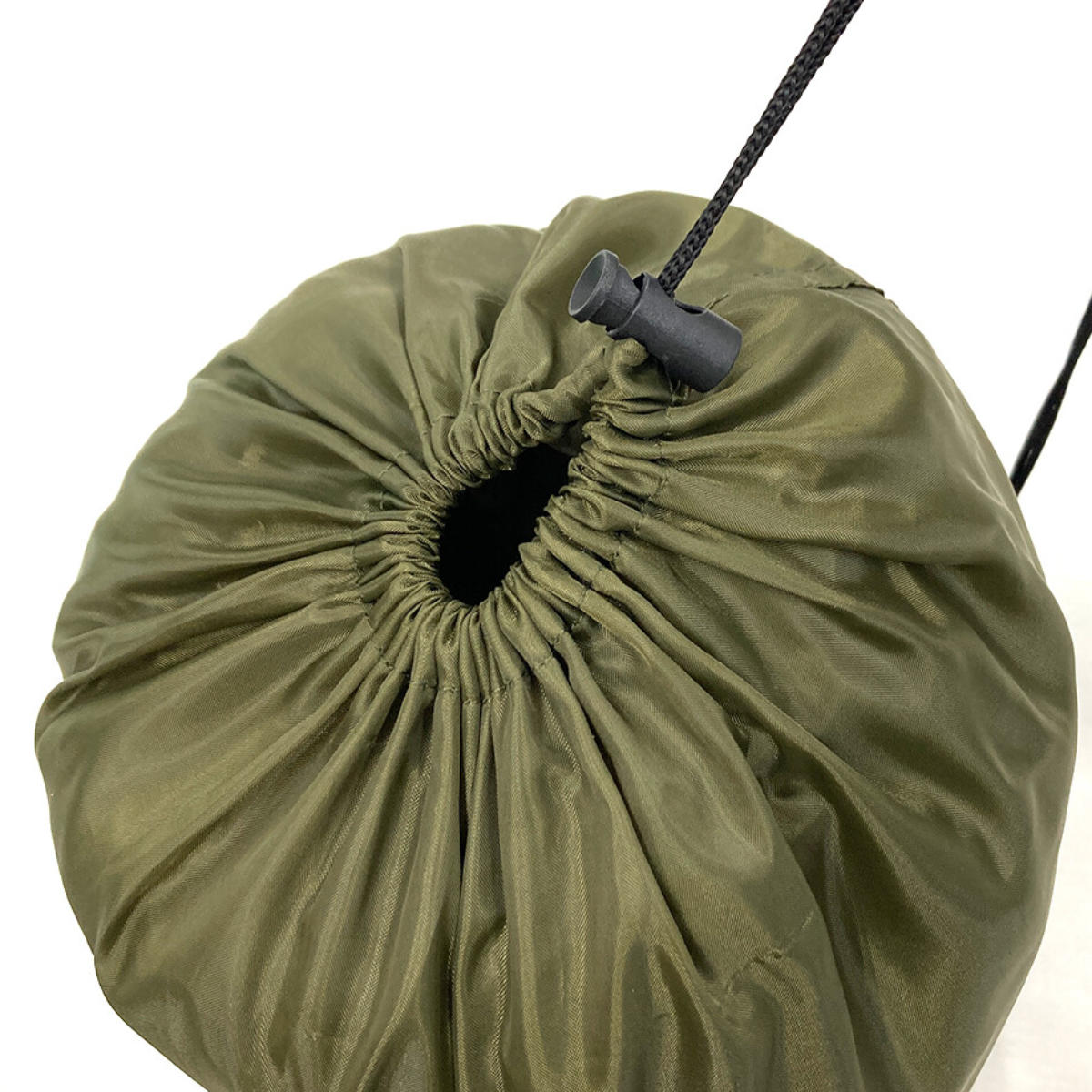 | 取っ手付き 収納袋には取っ手が付いており、取り出しに便利です。 | 収納袋にもドローコード付き 袋の開け口を緩めたり絞ったり、ボリュームを抑えることができます。 |