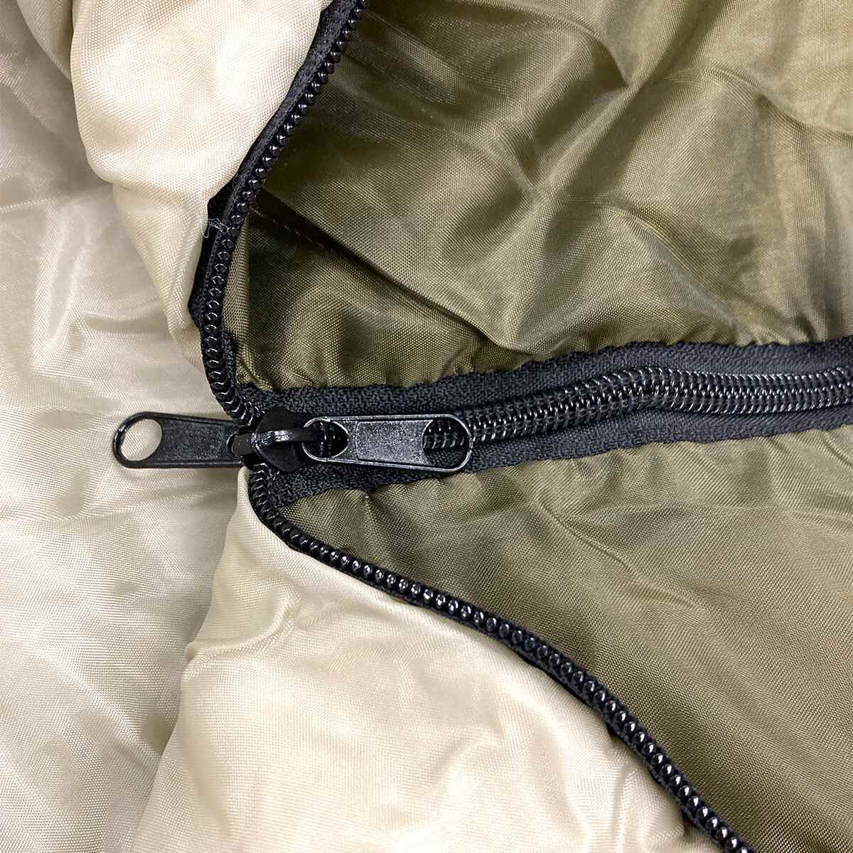 | さらっとした肌触り ポリエステルの材質でさらっとしていてオールシーズン使用可能。表側は風を通しにくく、内側は肌触りの良い素材で心地よいです。 | 巻き込みにくいダブルジッパー 内側と外側に両方にジッパーがあるので、生地を巻き込みにくく、スムーズに開閉します。 |
