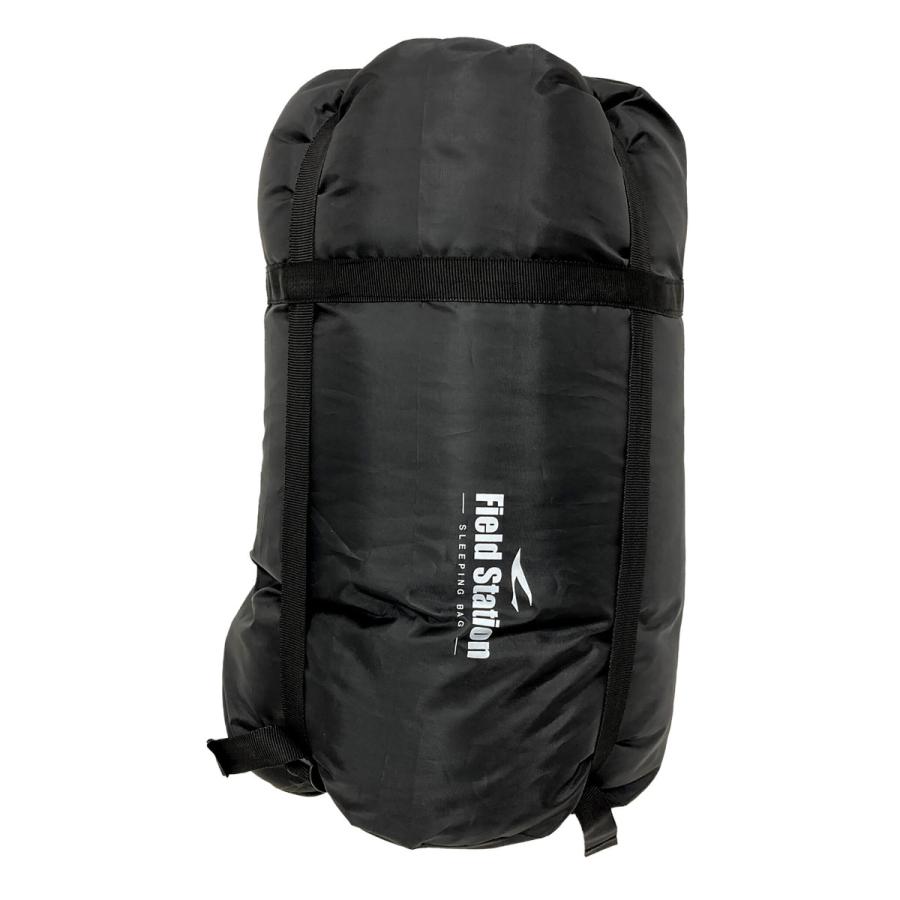 調節可能なバックル付きの収納袋ですので、大きな寝袋をコンパクトに圧縮することが出来ます。取り出し口にはドローコードが付いており、収納袋の開け口を緩めたり絞ったり、ボリュームを抑えることができます。また、収納袋の上部には取っ手が付いています。