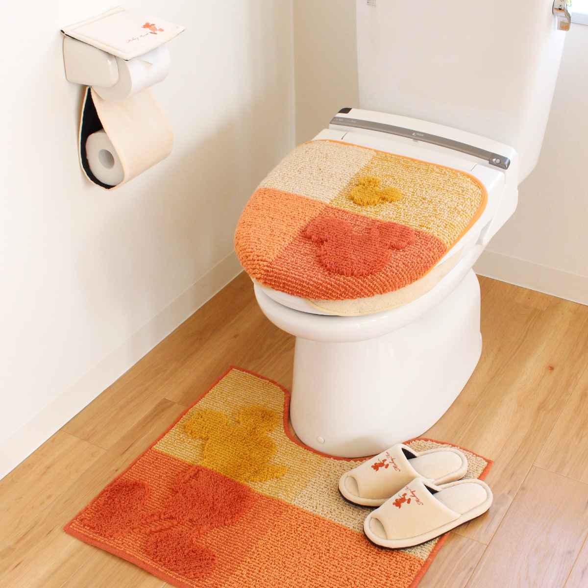 フタカバー 洗浄暖房型 ミッキーマウス オレンジ ( ミッキー 蓋カバー 蓋 フタ カバー 単品 トイレ 吸着 吸着タイプ ディズニー ミッキートイレタリー Disney 洗える 洗濯 洗濯可 洗浄暖房 トイレタリー キャラ キャラクター )