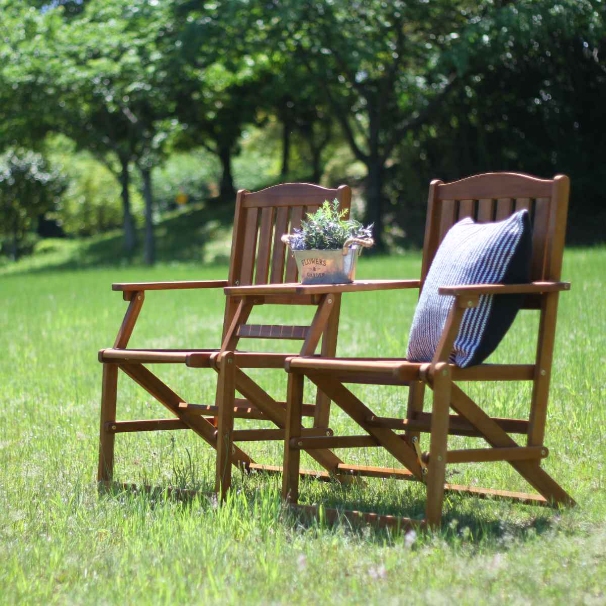 ガーデンチェア フォールディング ラブベンチ 天然木 ( ベンチ 2連チェア テーブル付き 折りたたみ 木製 屋外 ウッドチェア 庭 バルコニー 2人掛け アカシア パラソル ひじ掛け ガーデンファーニチャー 椅子 おしゃれ )のレビュー