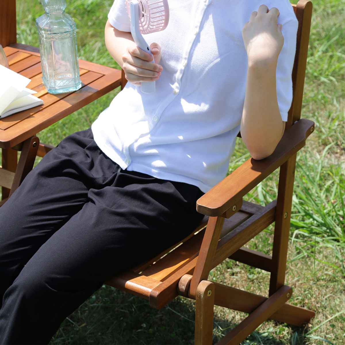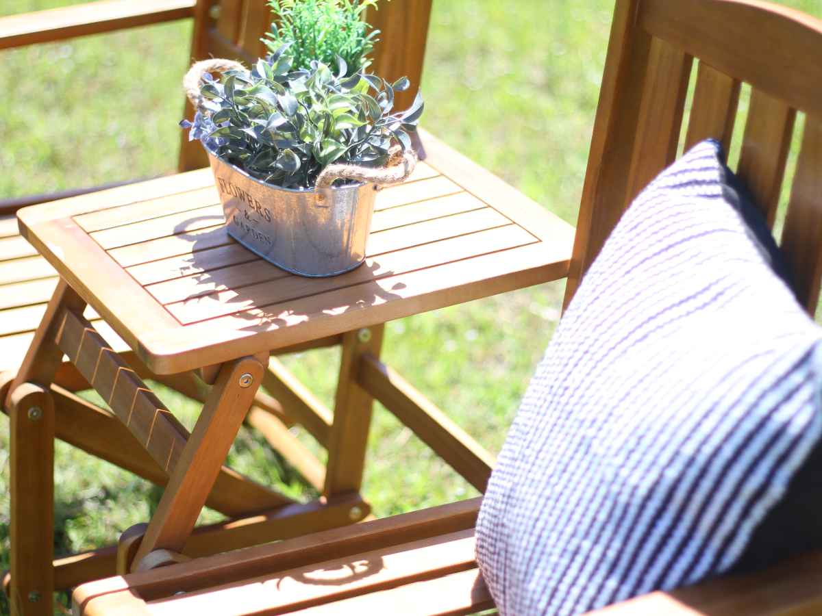 背もたれと肘置きがあり、リラックスして座れます。お庭やバルコニーなどに置いて、のんびりと読書をしたり、寛ぎたいときにぴったりです。お子様がお庭のプールで遊ぶ時の見守りやバーベキューなど、外で過ごす時間に活躍します。
