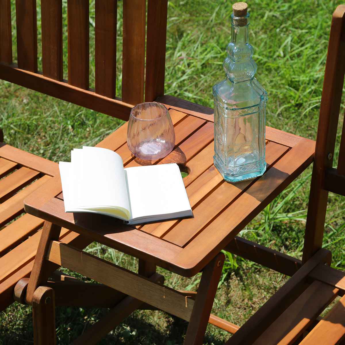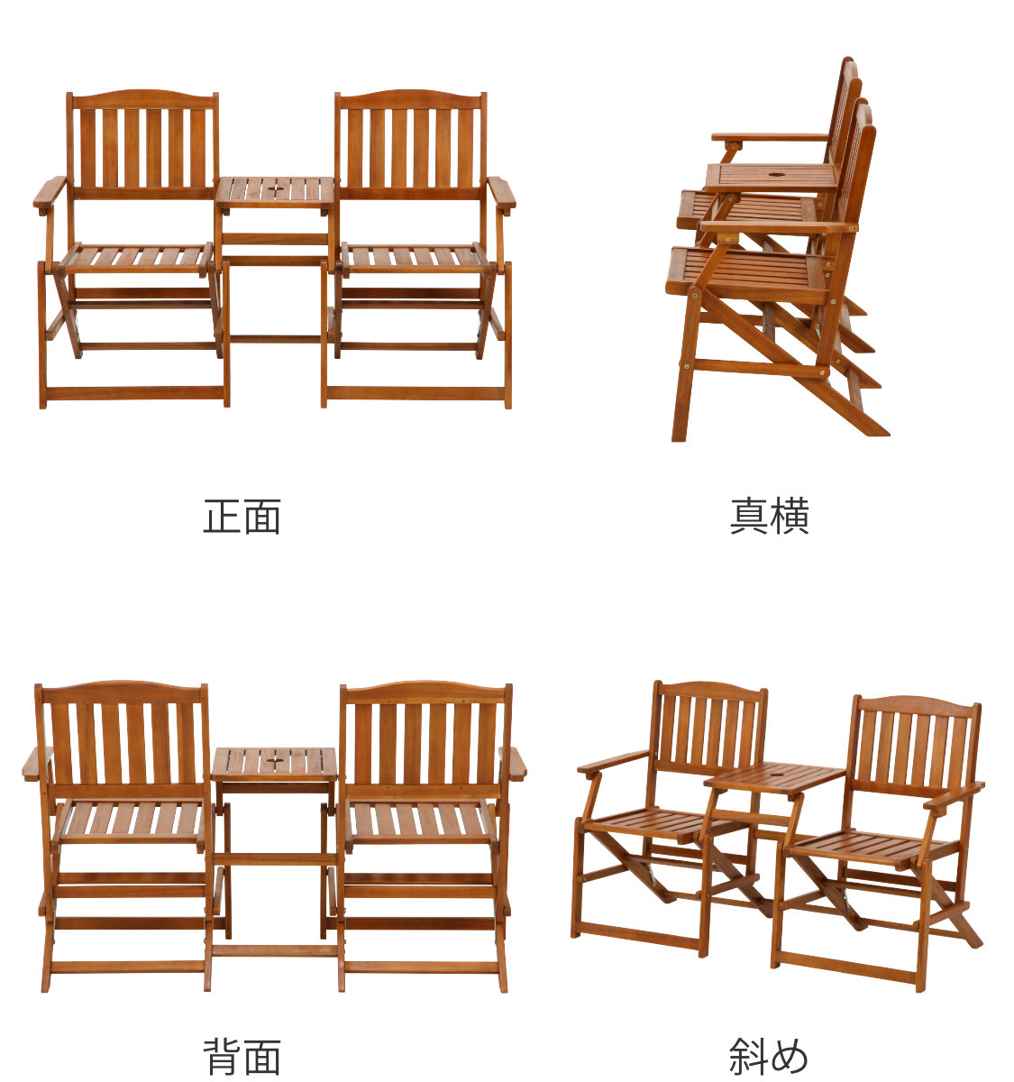 ガーデンチェア フォールディング ラブベンチ 天然木 ( ベンチ 2連チェア テーブル付き 折りたたみ 木製 屋外 ウッドチェア 庭 バルコニー 2人掛け アカシア パラソル ひじ掛け ガーデンファーニチャー 椅子 おしゃれ )