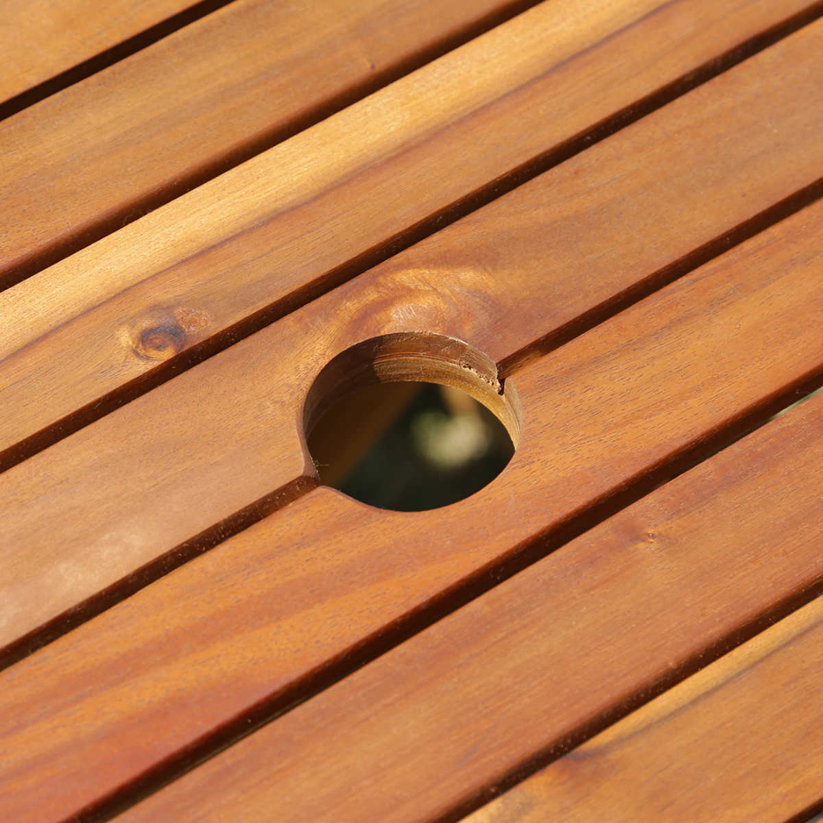テーブルには約5cmのパラソルホールがあり、パラソルを立てることができます。日よけ対策もバッチリです。