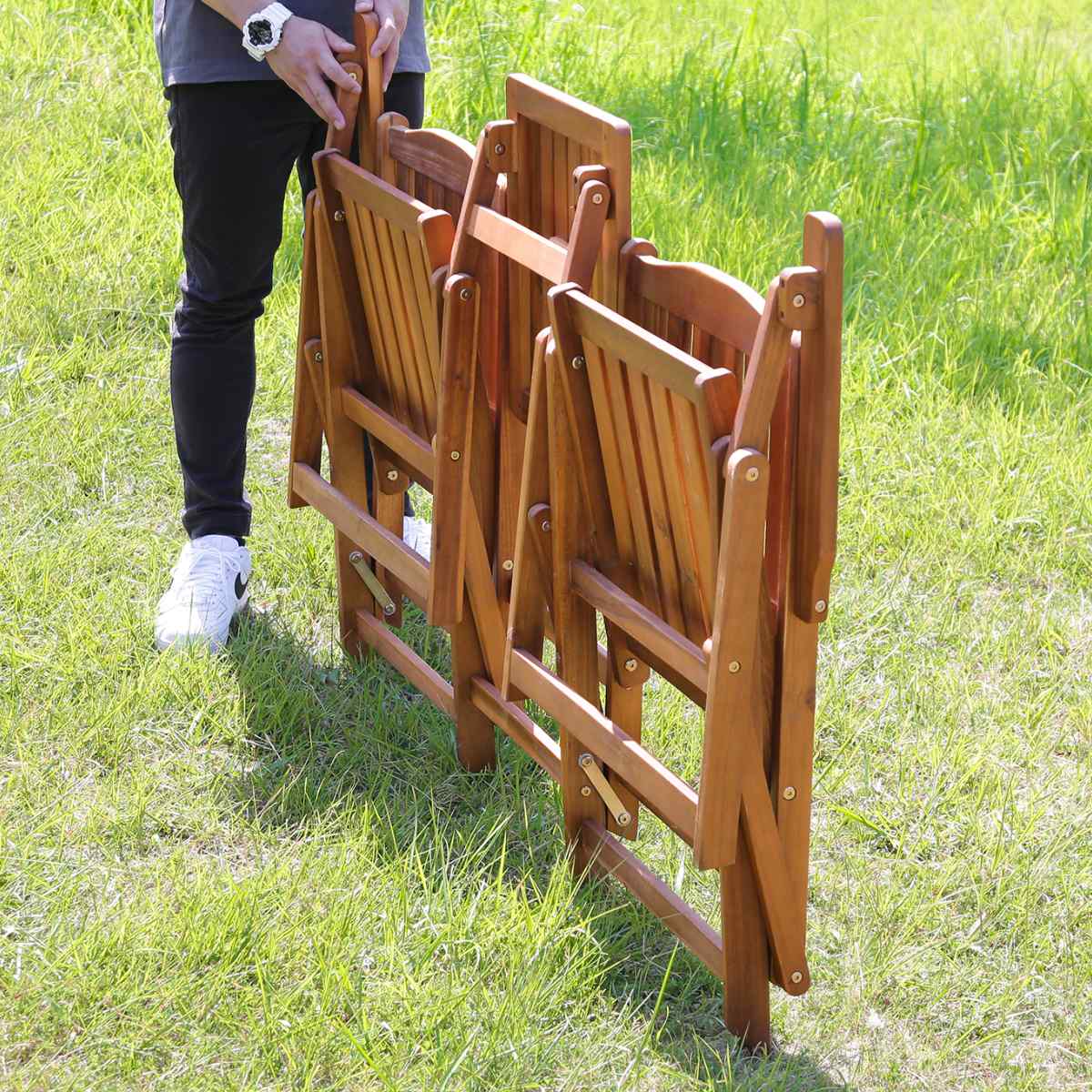 テーブルや座面を動かすだけで、簡単に折りたためるので悪天候のときも素早く撤収できます。コンパクトになるので、オフシーズンや使わないときはガレージや物置に収納しても場所を取りません。