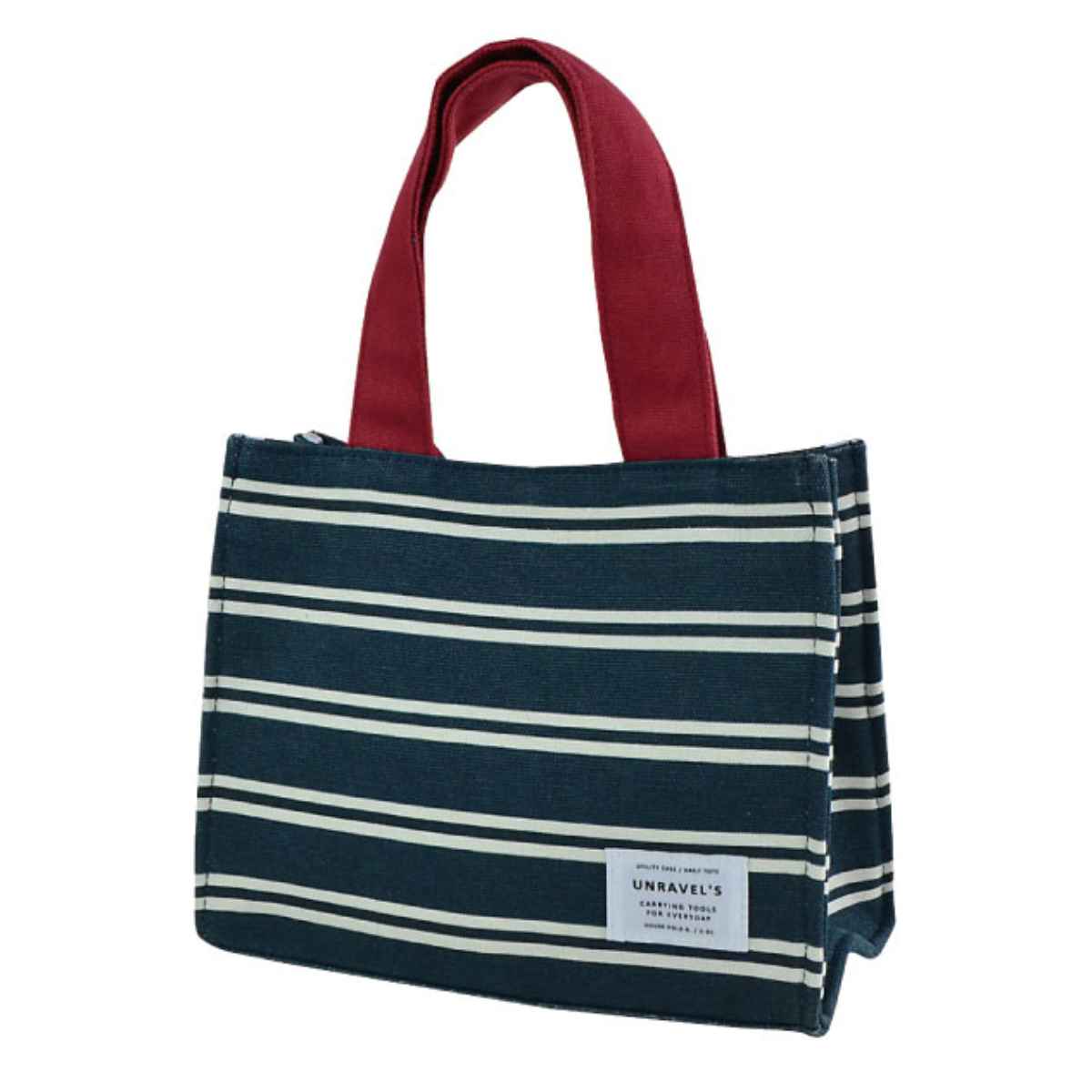 ランチバッグ 保冷 TOMY ボーダー ( 保冷ランチバッグ 保温 弁当袋 お弁当袋 ランチトートバッグ お弁当箱 弁当 袋 ランチ マチ付き お弁当入れ 手提げかばん ランチトート )【 ネイビー 】