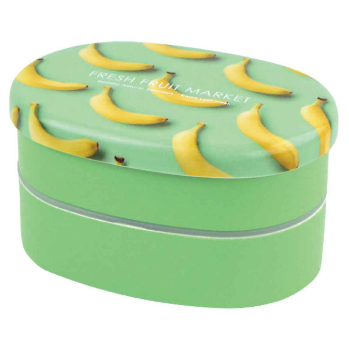 弁当箱 2段 500ml フルーツ オーバル ( お弁当箱 ランチボックス 食洗機対応 レンジ対応 小判型 女子 食洗機OK レンジOK お弁当 弁当 二段 ゴムベルト付き 女性 日本製 果物 )【 バナナ 】