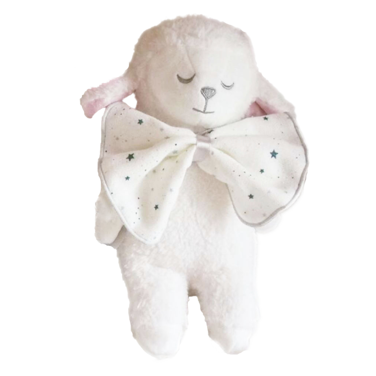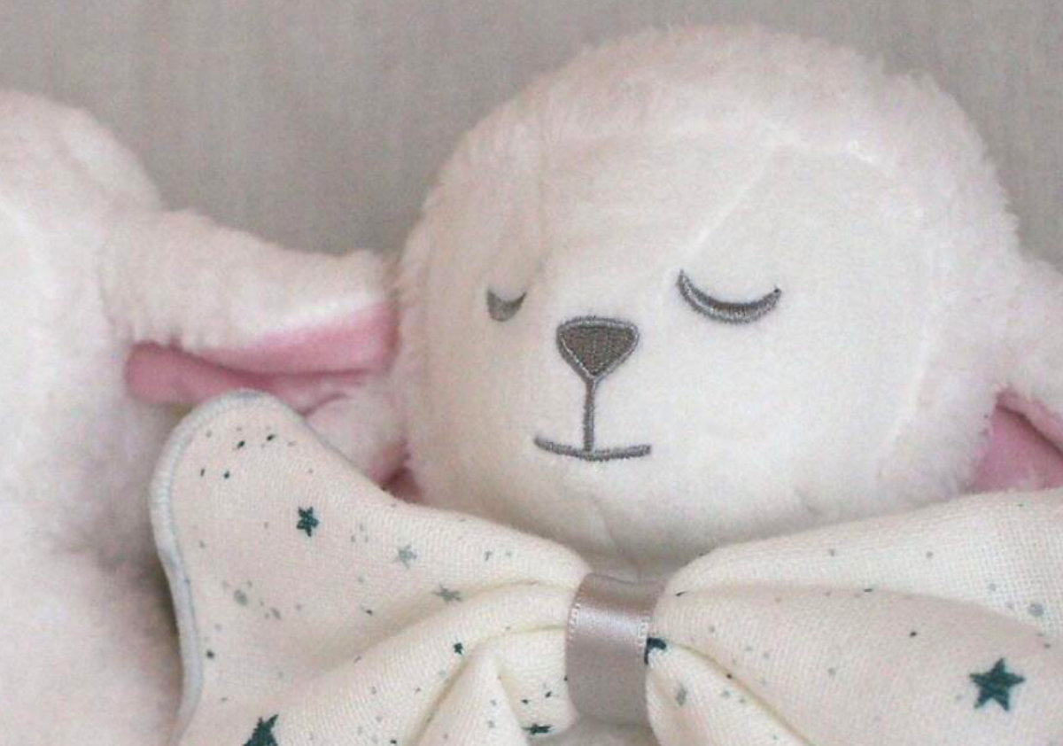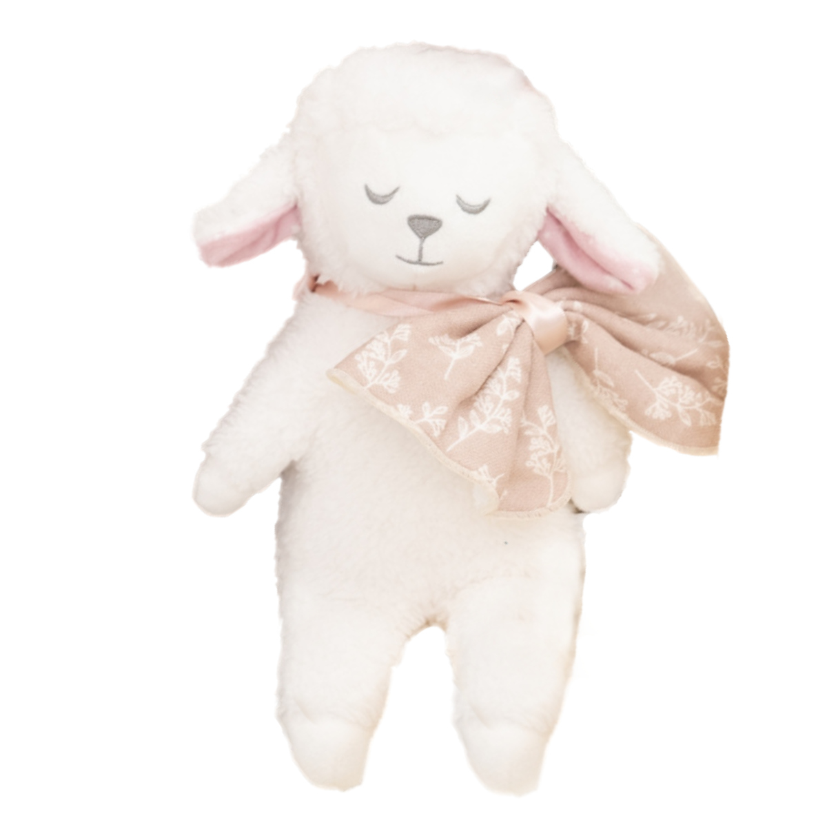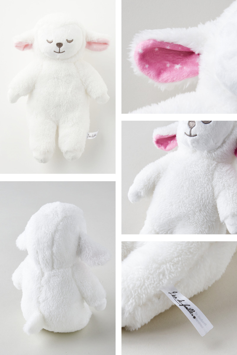 可愛らしいお顔の男の子と女の子のひつじさん、2種類からお選びいただけます。男の子のひつじさんにはスター柄、女の子のひつじさんにはボタニカル柄のミニハンカチが付属しています。ミニハンカチはそれぞれ、リボンの形になってひつじさんに可愛く取り付けられています。