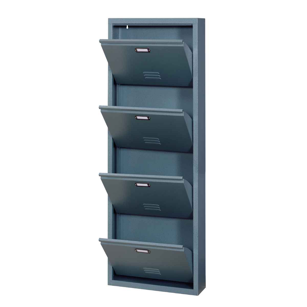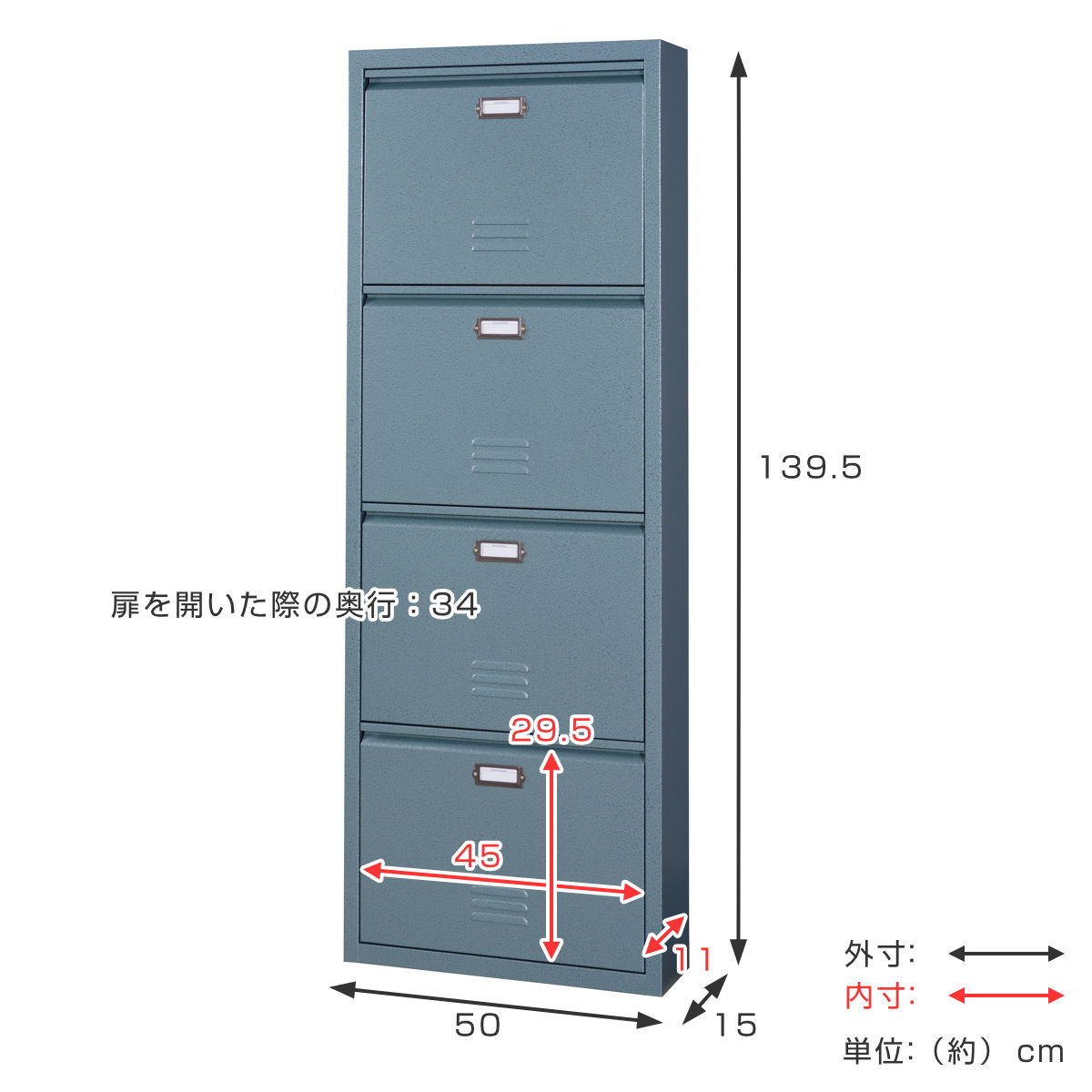 シューズラック 4段 RALD グリーン 幅50cm ( ラルド スリム シューズケース シューズボックス 下駄箱 靴収納 靴箱 ラック ロッカー風 収納 玄関収納 収納棚 靴 靴入れ 雑誌 本 棚 玄関 フラップ扉 コンパクト 薄型 )