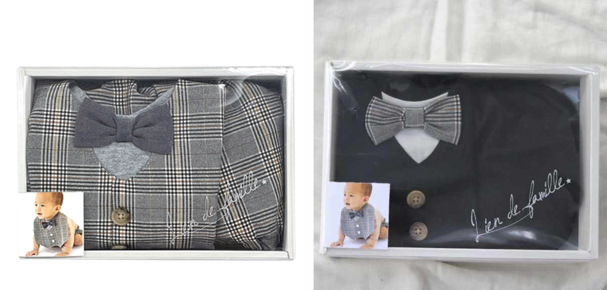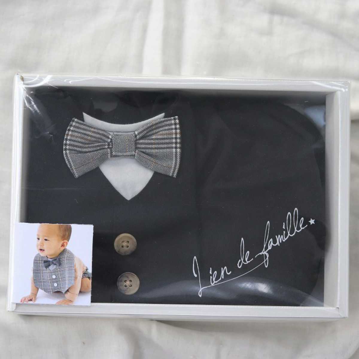 ギフトセット Lien de famille フォーマル 2点 スタイ ブルマ 男の子 出産祝い ( ギフト セット よだれかけ ベビーパンツ 贈り物 お祝い おしゃれ 赤ちゃん ベビースタイ かぼちゃパンツ プレゼント かわいい ) 【チェック】