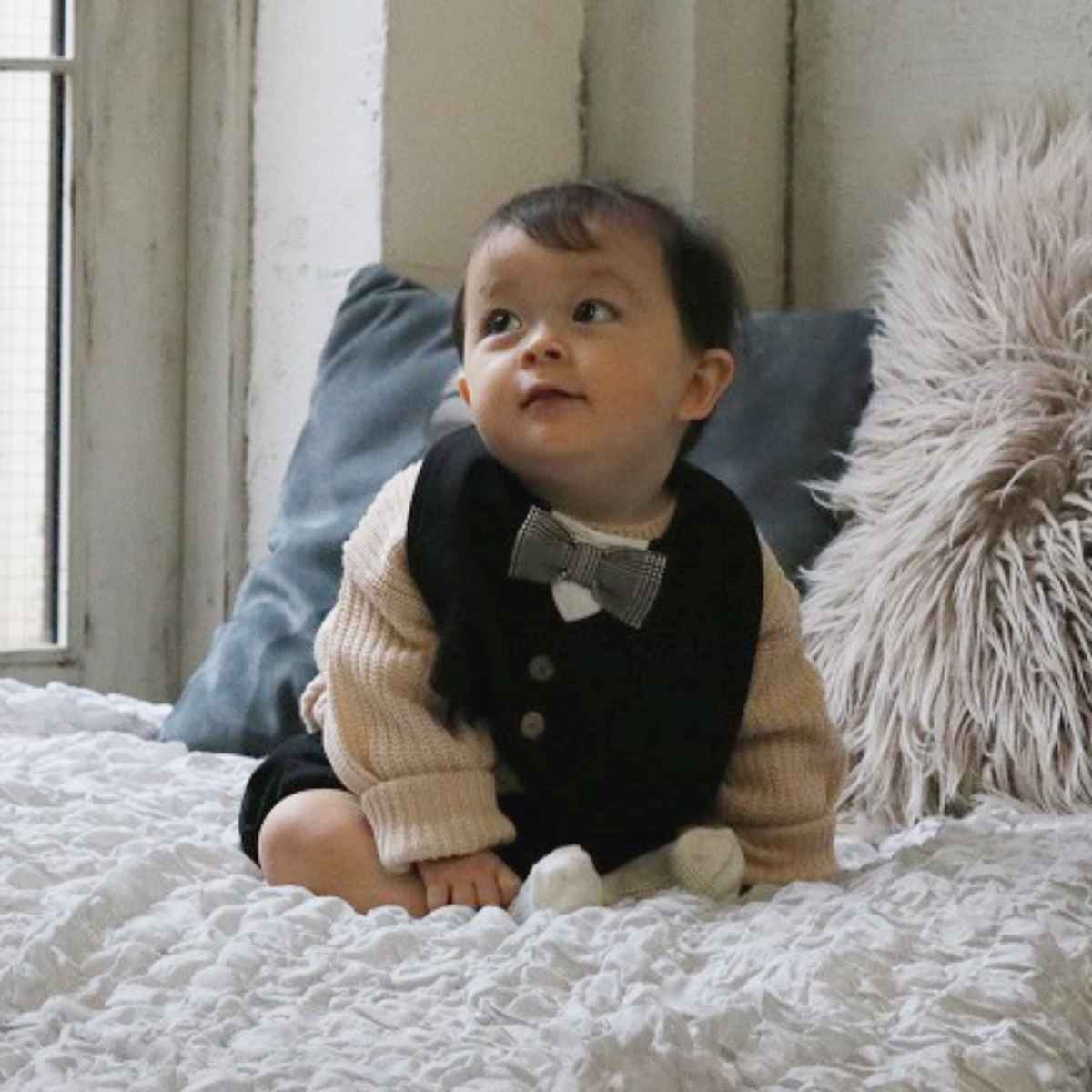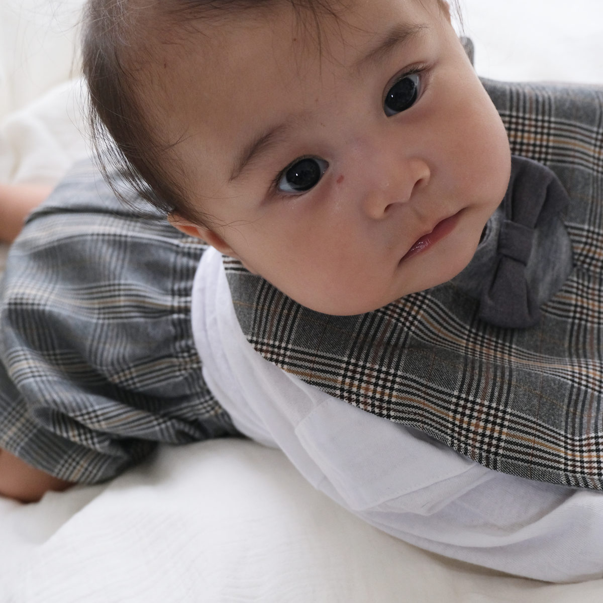 赤ちゃんの肌にやさしい素材でありながら、パリッとした質感で高級感も抜群、男の子のおめかしスタイルにぴったりです。しっかりしたピンとハリのある生地が、よりフォーマルさを演出してくれます。