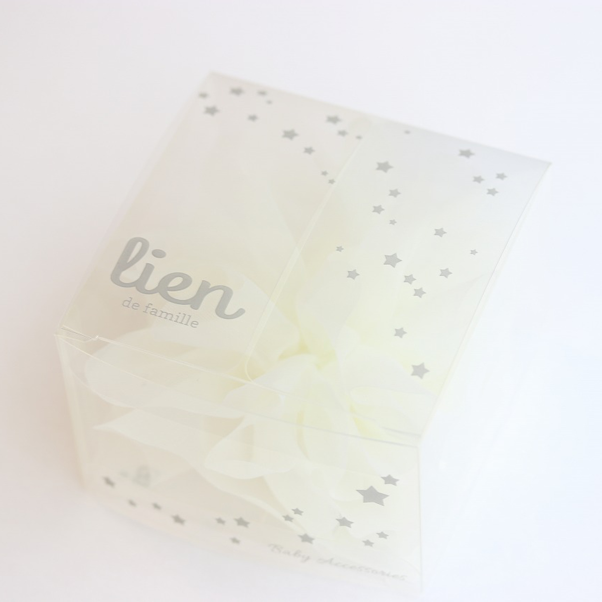 繊細な作りのヘアバンドが型崩れしないように、そのままプレゼントできる可愛らしいクリアボックスに入れてお届けします。