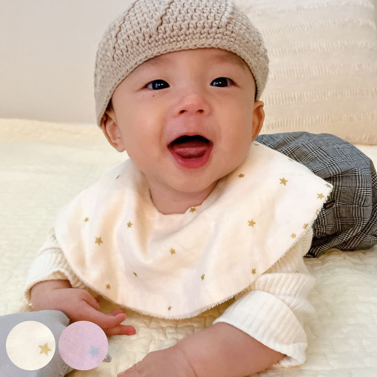 スタイ Lien de famille スター 出産祝い ( よだれかけ ベビースタイ 前掛け エプロン 綿 赤ちゃん プレゼント 女の子 男の子 日本製 ベビーエプロン お食事エプロン 丸い ベビー かわいい おしゃれ ) 【オフホワイト】