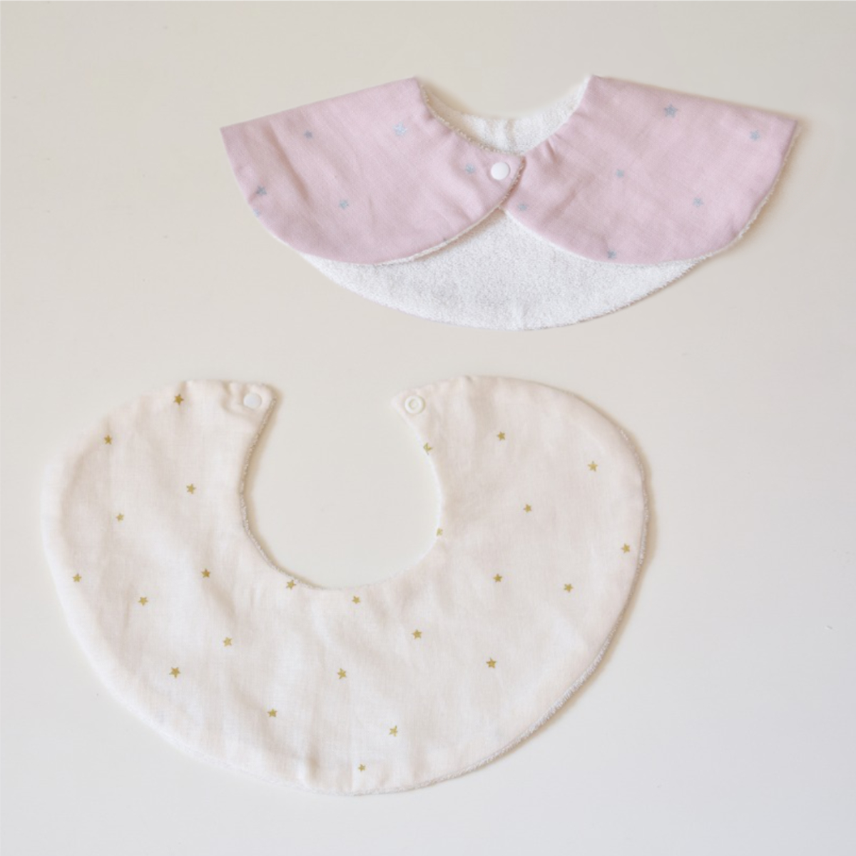 丸い形で服を守る星柄のスタイ