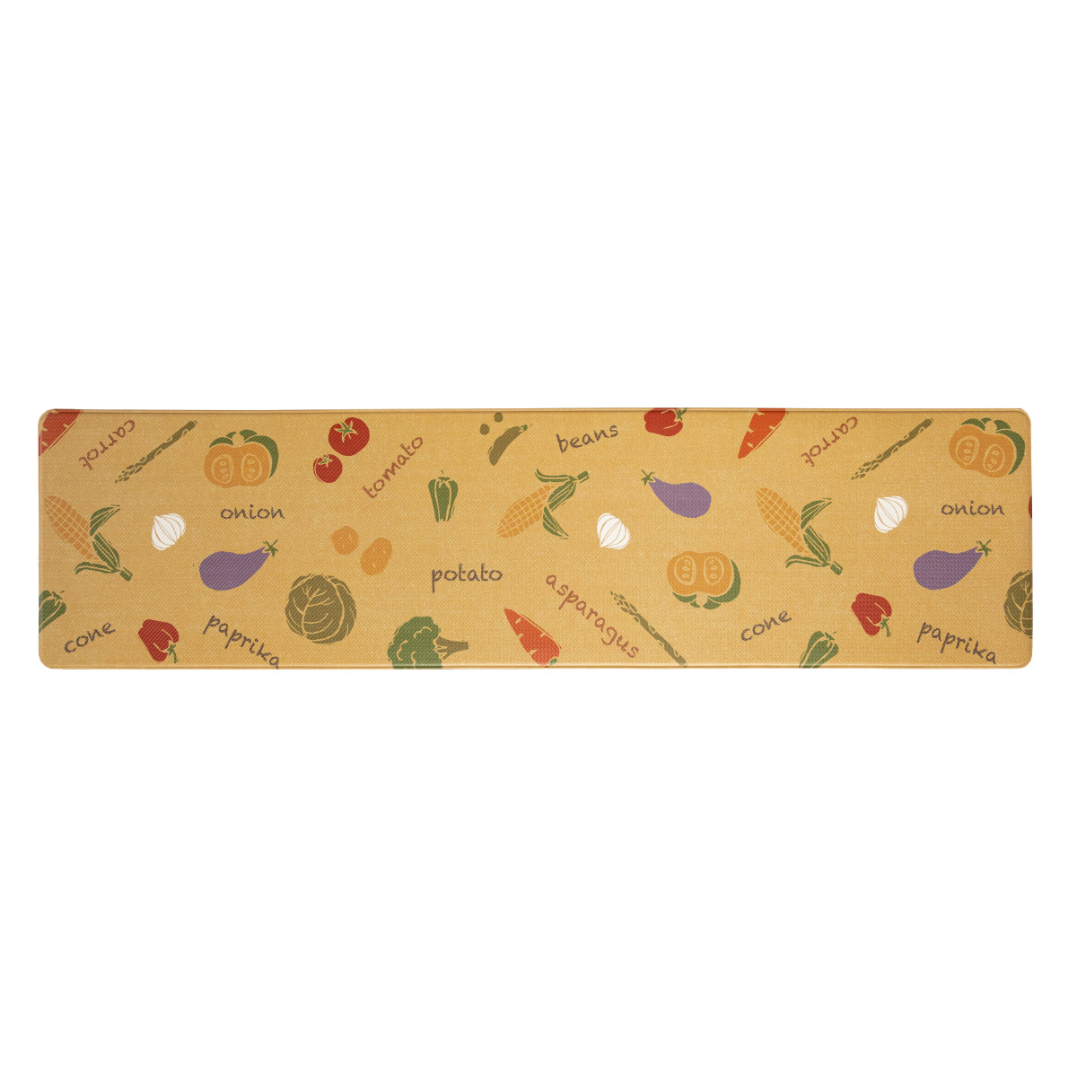 キッチンマット 拭ける PVC 野菜 キッチンガーデンベージュ 45×180cm ( 45cm 180cm ササッと拭けるマット PVCキッチンマット キッチン マット PVCマット クッションマット 洗濯不要 お手入れ簡単 拭けるキッチンマット )
