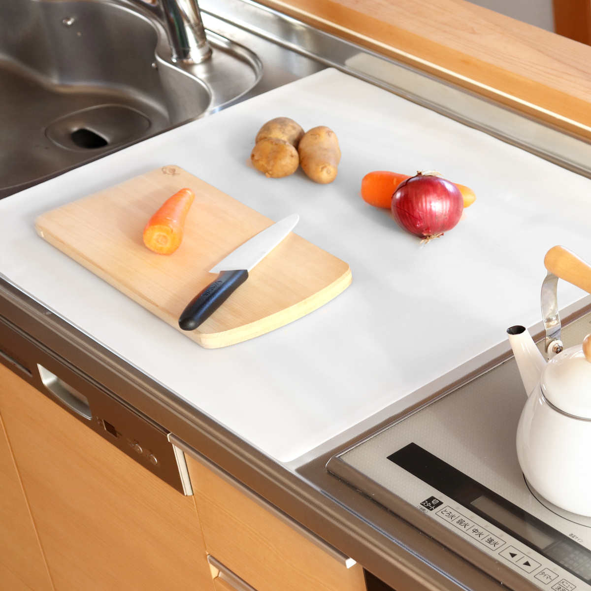 キッチンの人工大理石やステンレスの作業台に敷いてキズや汚れ、変色から守るマットです。また、耐久性にも優れているので長く使えます。