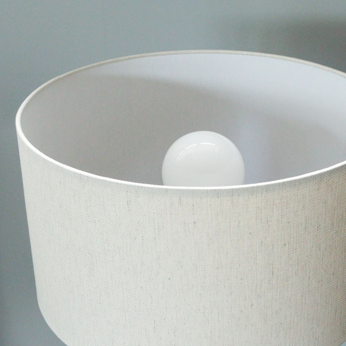 灯りをふんわり広げるファブリックスチールやプラスチックのシェードとは異なり、ファブリックシェードから透ける灯りは柔らかく、ほっと落ち着く空間を作り出します。光源が直接目に入らないので、眩しさも軽減されます。