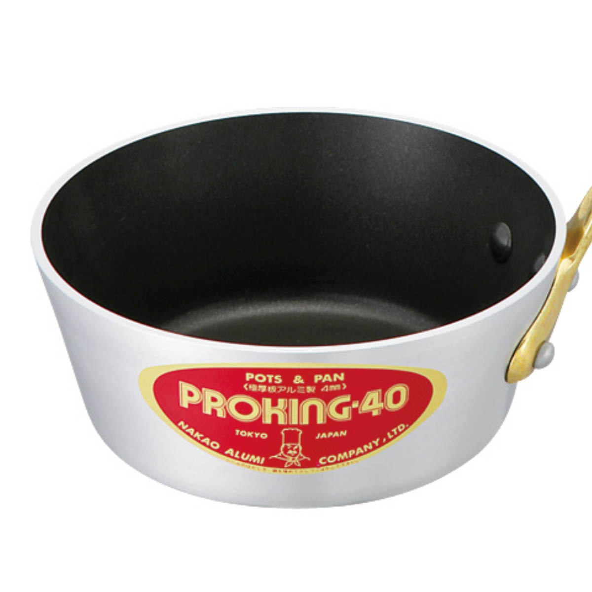 極厚4.0mmアルミ材を使用した片手鍋です。厚板なので蓄熱性が高く、熱コントロールに優れているので、思い通りの調理が実現します。底が狭く上部が広くなっているテーパータイプなので、スープやソース作りに活躍します。