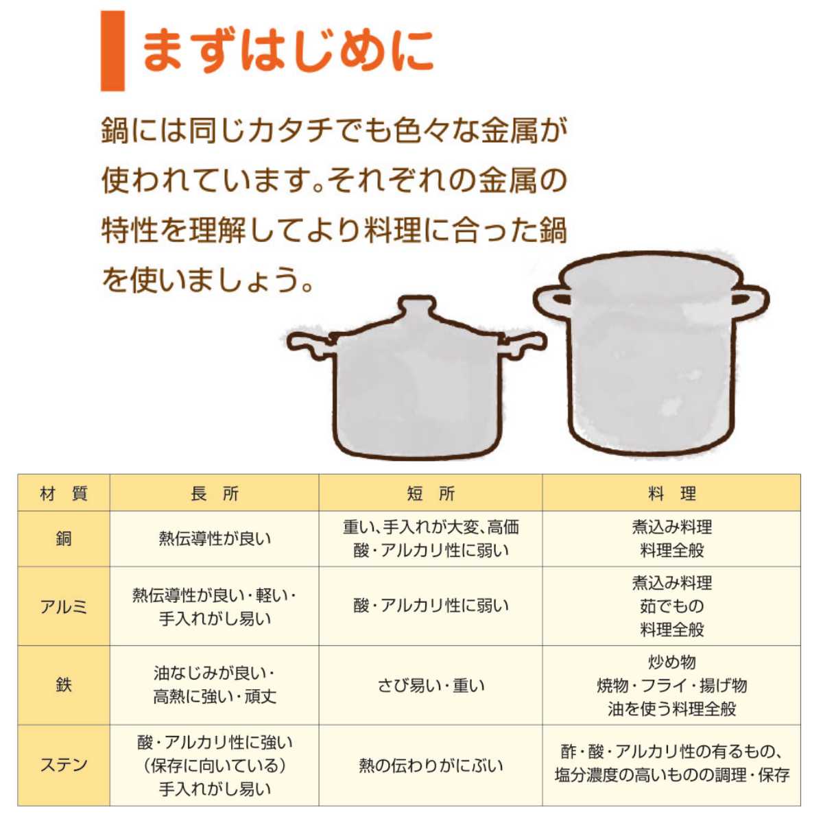 アルミ:熱伝導性が良くお手入れがしやすい