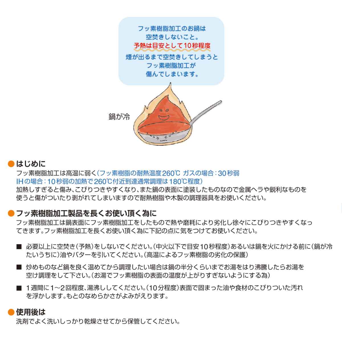 ●内面がふっ素樹脂加工で汚れが付きにくく、お手入れが簡単です。