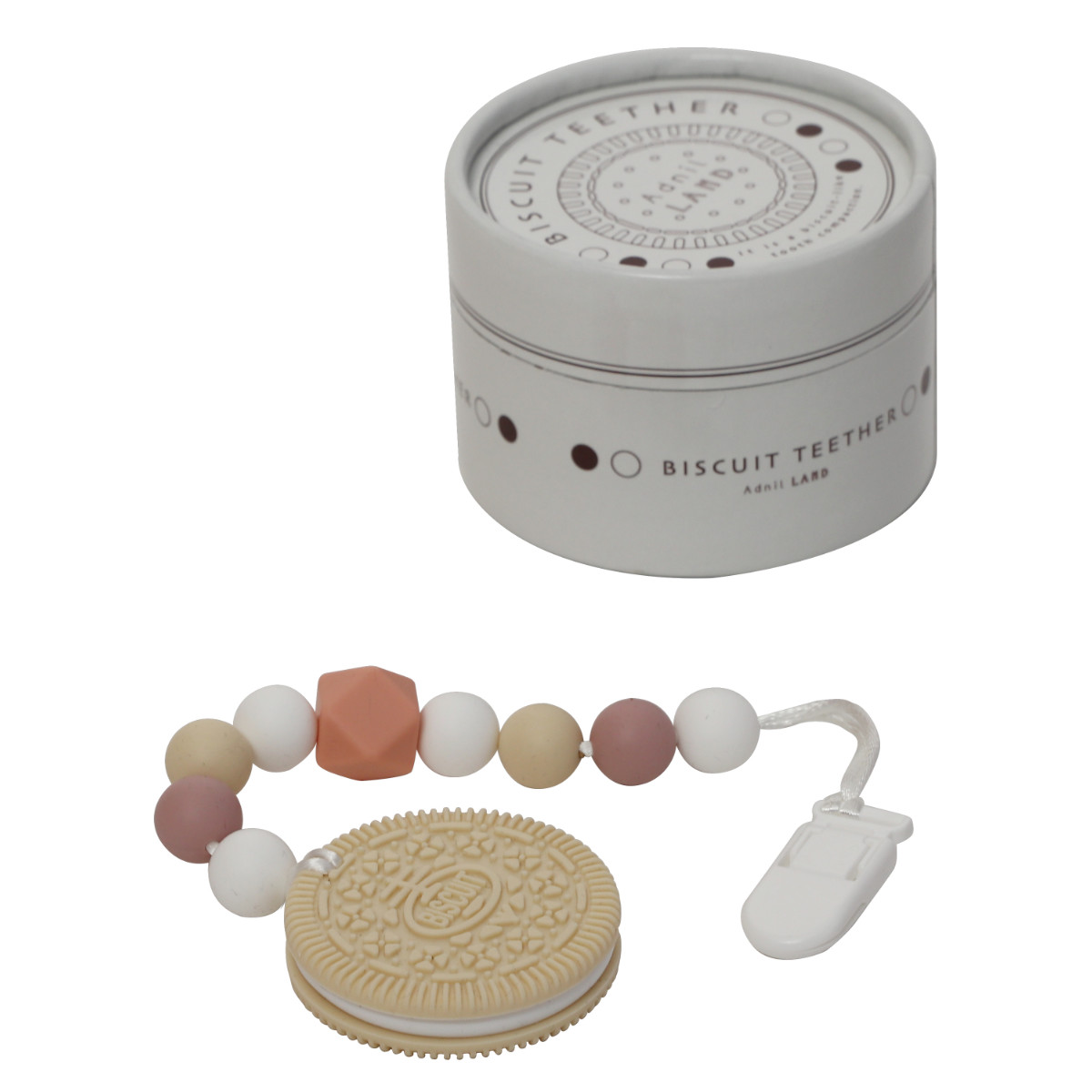 おもちゃ BISCUIT TEETHER 歯固め 赤ちゃん 北欧風 ( シリコン はがため 歯がため ベビー クリップ付き 出産祝い プレゼント ビーズ ストラップ 乳歯 歯 生え始め 噛むおもちゃ ビスケット型 かわいい ギフト )