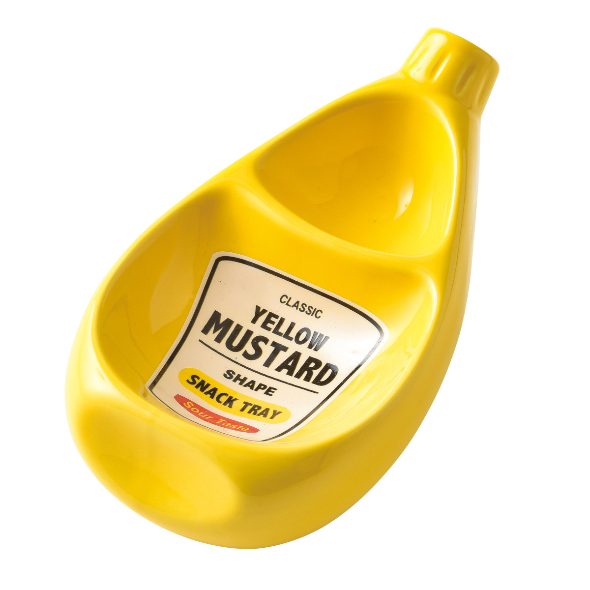 プレート 16cm Motif スナックトレイ 陶器 ( 皿 お皿 スナックプレート 薬味皿 菓子皿 陶器製 小皿 仕切り付き フルーツ お菓子 スナック おつまみ おもしろグッズ おしゃれ )【 マスタード 】