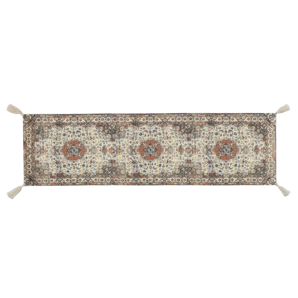 テーブルランナー 32×120cm デジタルプリント 綿100% ( テーブルセンター テーブルクロス テーブルウェア キッチン用品 おしゃれ タッセル付き エスニック風 アンティーク調 卓上 テーブル コーディネート キッチングッズ 布製 )【 オレンジ 】