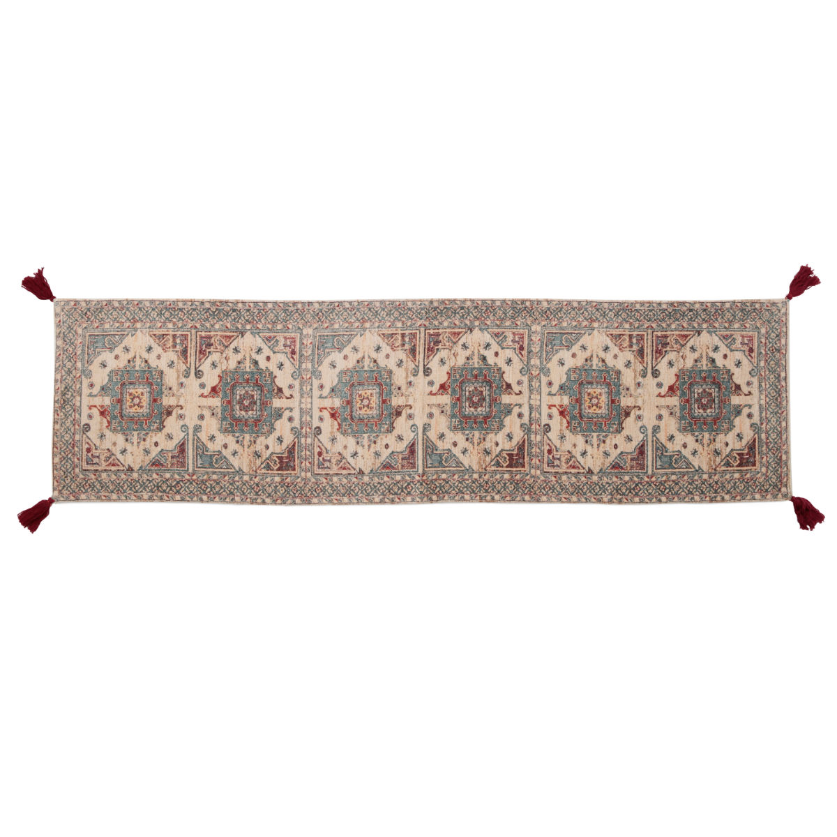 テーブルランナー デジタルプリント 綿100% ( テーブルセンター テーブルクロス テーブルウェア キッチン用品 おしゃれ タッセル付き エスニック風 アンティーク調 卓上 テーブル コーディネート キッチングッズ 布製 )【 アイボリー 】