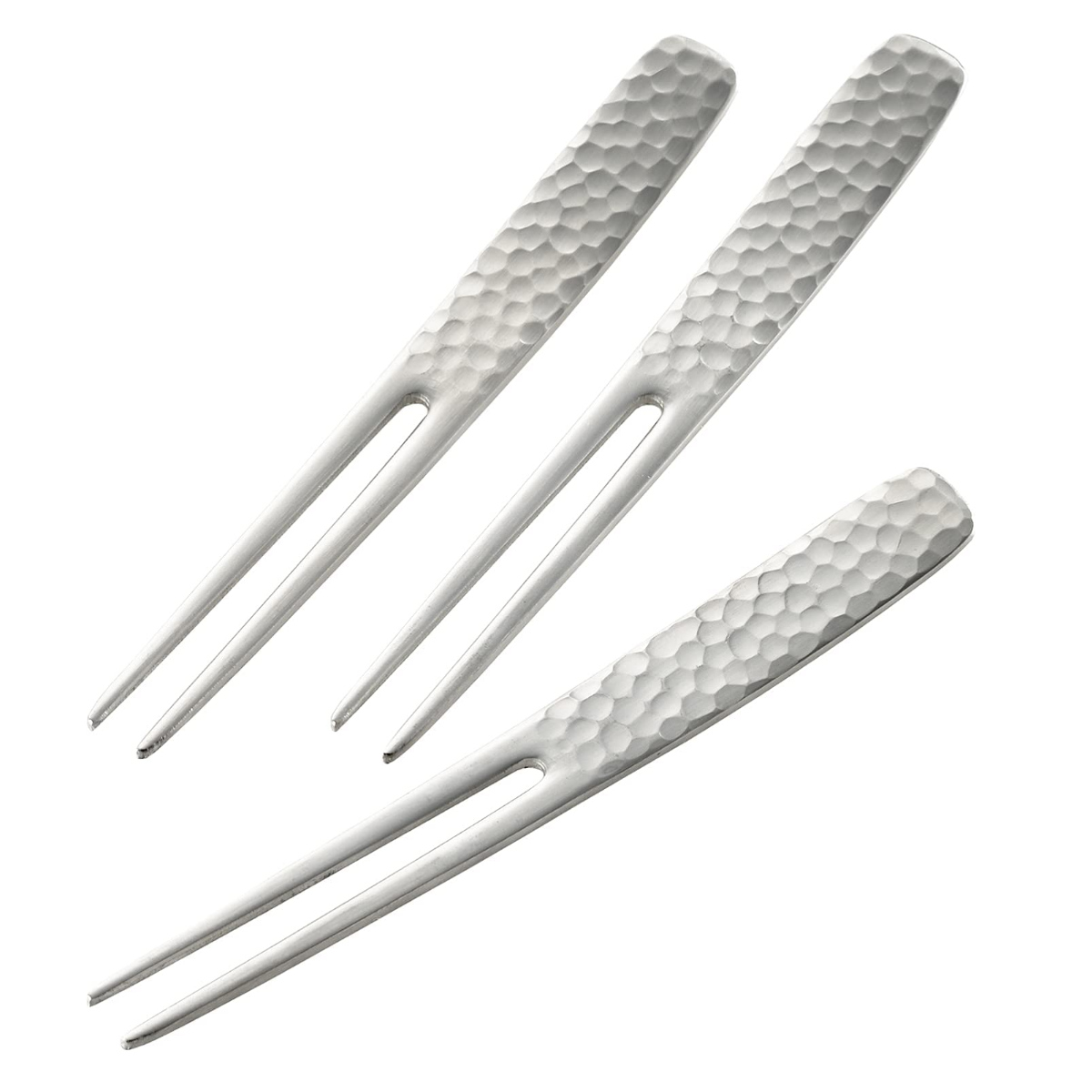 ピックは錆に強く耐久性のある上質な18-8ステンレス製です。手に触れる部分は槌目模様の凹凸でつまみやすい形状です。