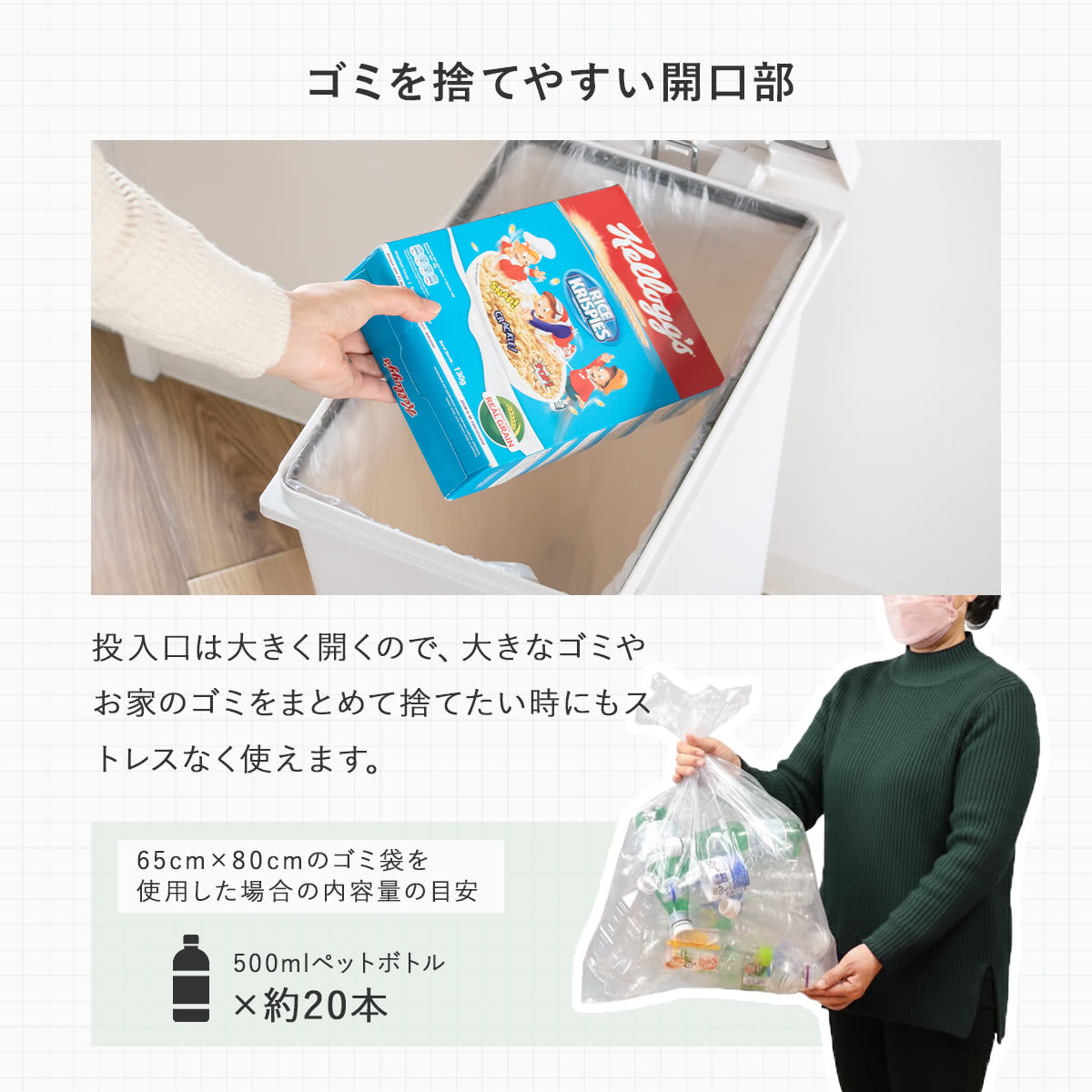 | 対応サイズ | ※適応袋サイズ:45L(約 幅65×高さ80cm) |