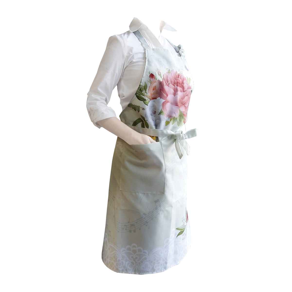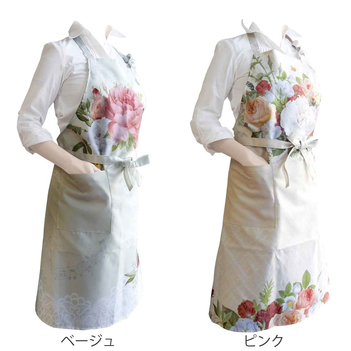 ●エプロン全体にローズがデザインされた華やかなエプロンです。