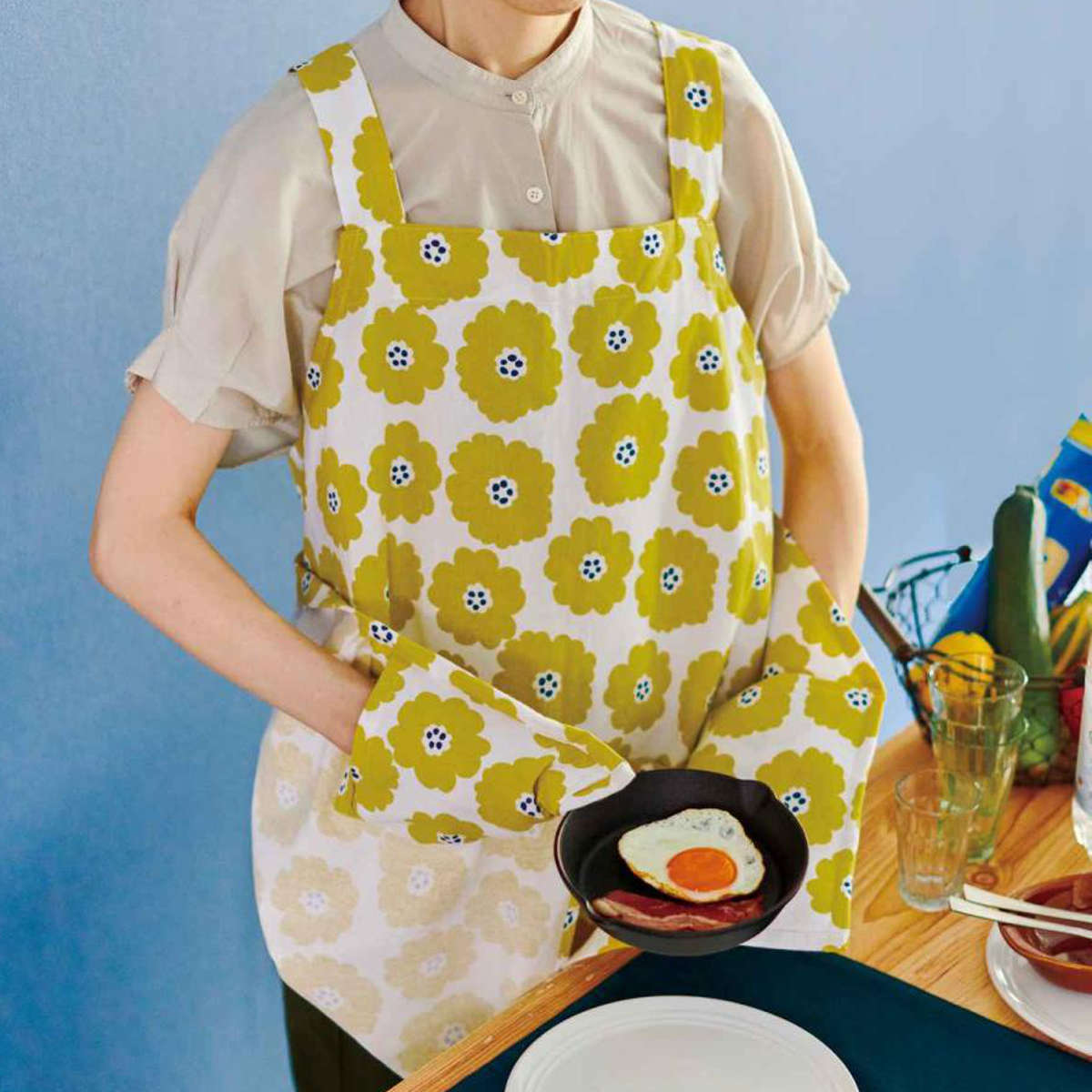 毎日を楽しむカジュアルエプロンhabituel(アビチュアル)シリーズ。シンプルな型で、日常使いしやすいエプロンです。エプロン全体に描かれた甘過ぎないデザインがキッチン周りをおしゃれに魅せ、ファッション感覚で着ることができます。
