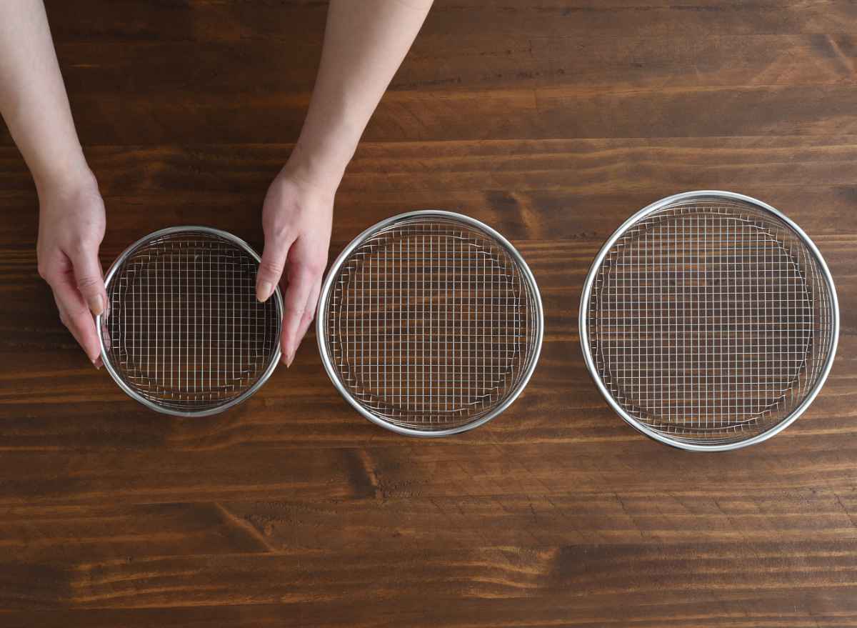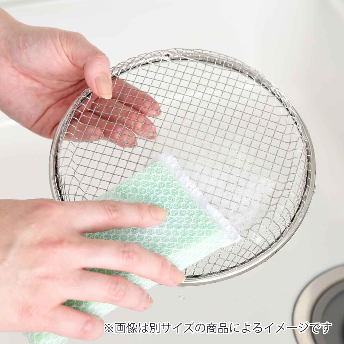 | 脚付き ゴミが溜まらず衛生的に使える一体型の設計です。水や油がよく切れ、熱が冷めやすく、乾燥にも使えます。 | 洗いやすい 網目が大きいので、洗いやすく水切れもいいので、すぐに乾きます。 |