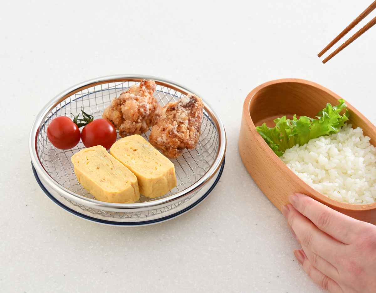 16cmとちょっと小さめサイズなので、お弁当を詰める前の粗熱取りや、フルーツや豆腐の水切りにも活躍します。