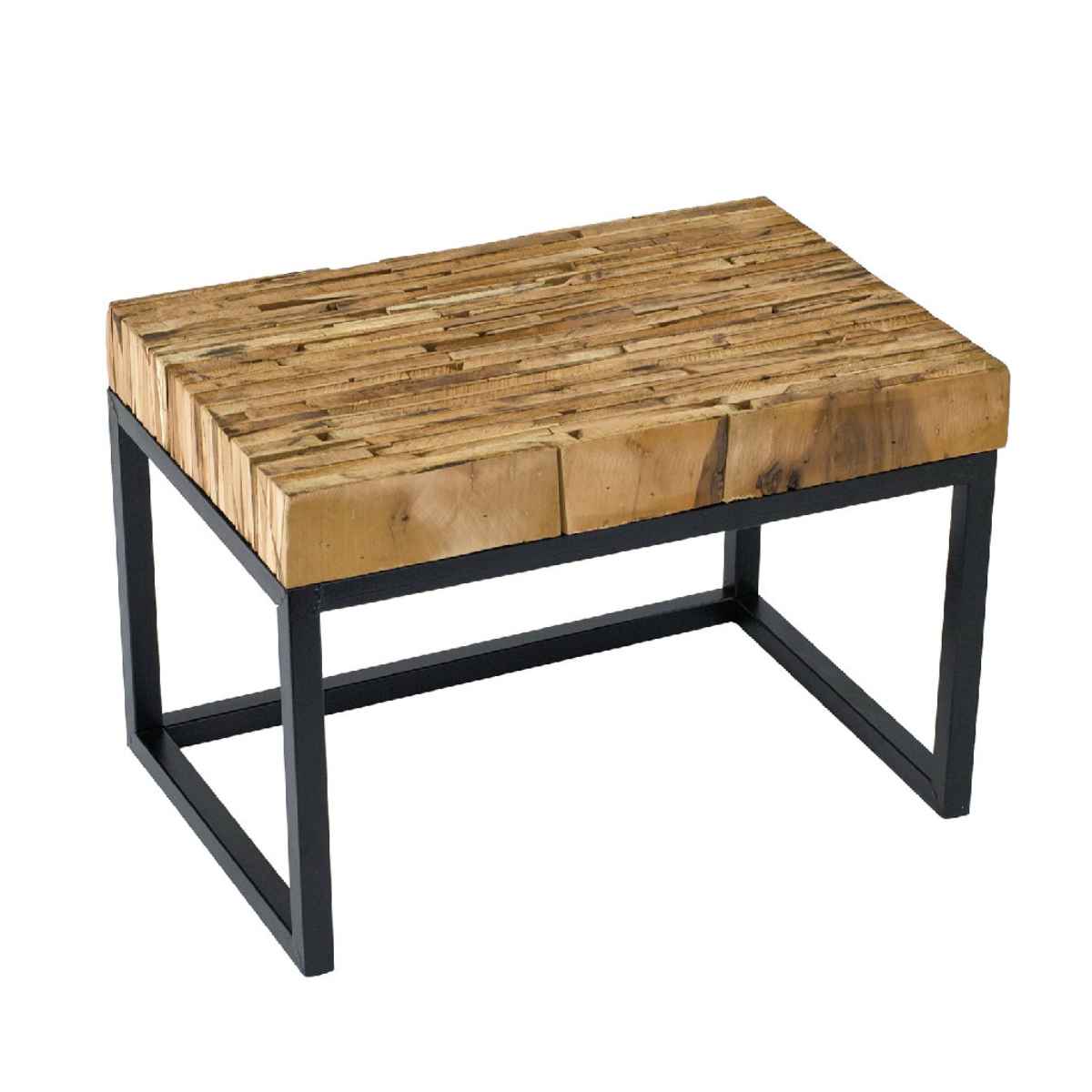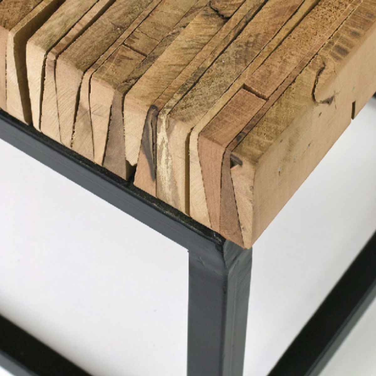 家具の生産で切り落としたPear tree(梨の木)の端材を組み合わせて作られています。木材自体の趣深い風合いが組み合わさり、アイアンの脚が付いていることで無骨さを感じるパーケットテーブルに仕上がっています。