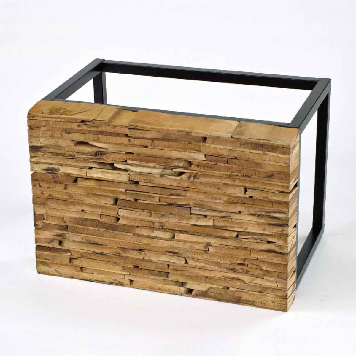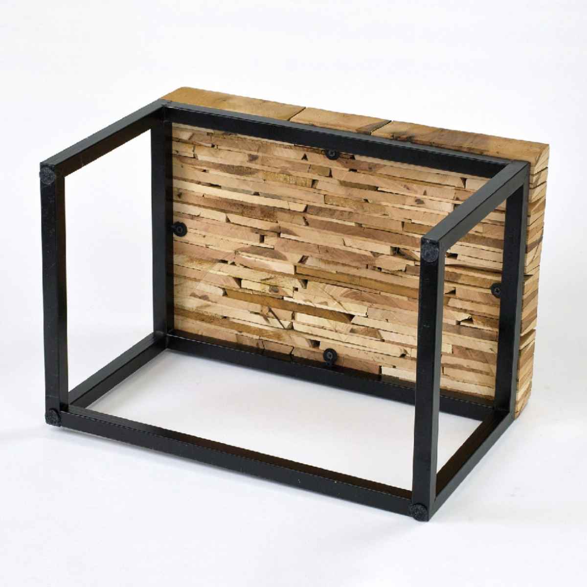 リサイクルウッドピースを組み合わせたディスプレイテーブルです。お気に入りの小物たちを特別な趣で飾ることが出来ます。天板の下にも十分なスペースがあり、ハイカットなどの靴や写真立てなど高さのある小物も置けるので空間を有効に使えます。