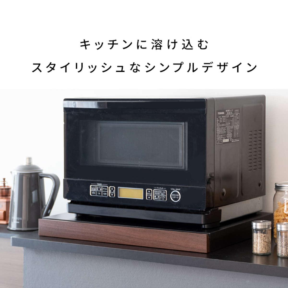 機能性だけでなくデザインにもこだわっており、シンプルな天板に木目のトレーがアクセントになったスタイリッシュな見た目がキッチンをお洒落にしてくれます。