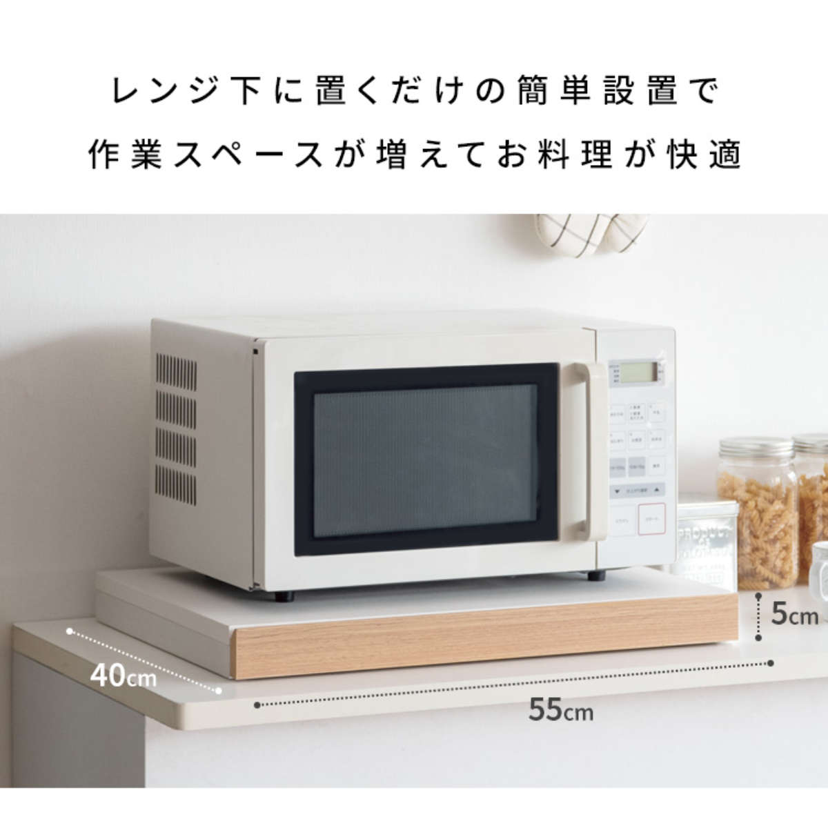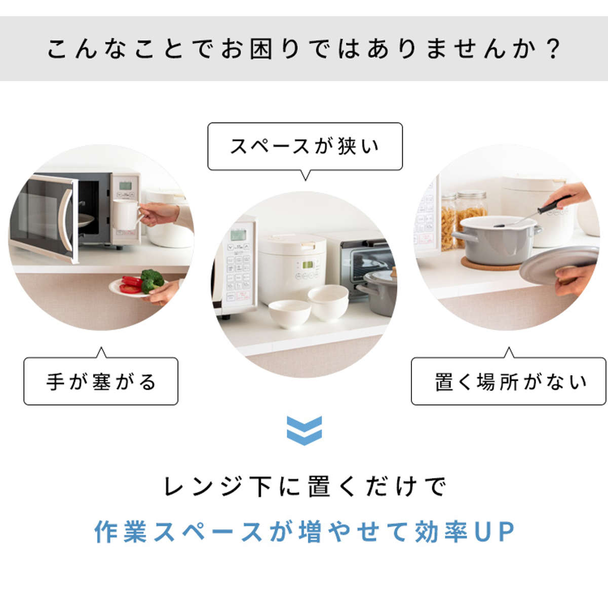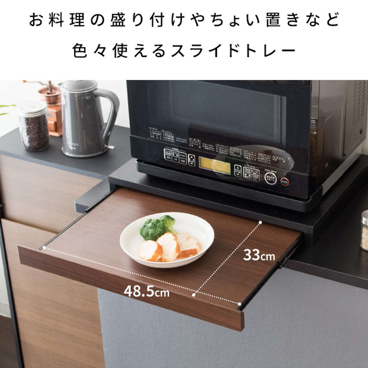 電子レンジや家電の下に置くだけで作業スペースが作れるレンジ下トレーです。