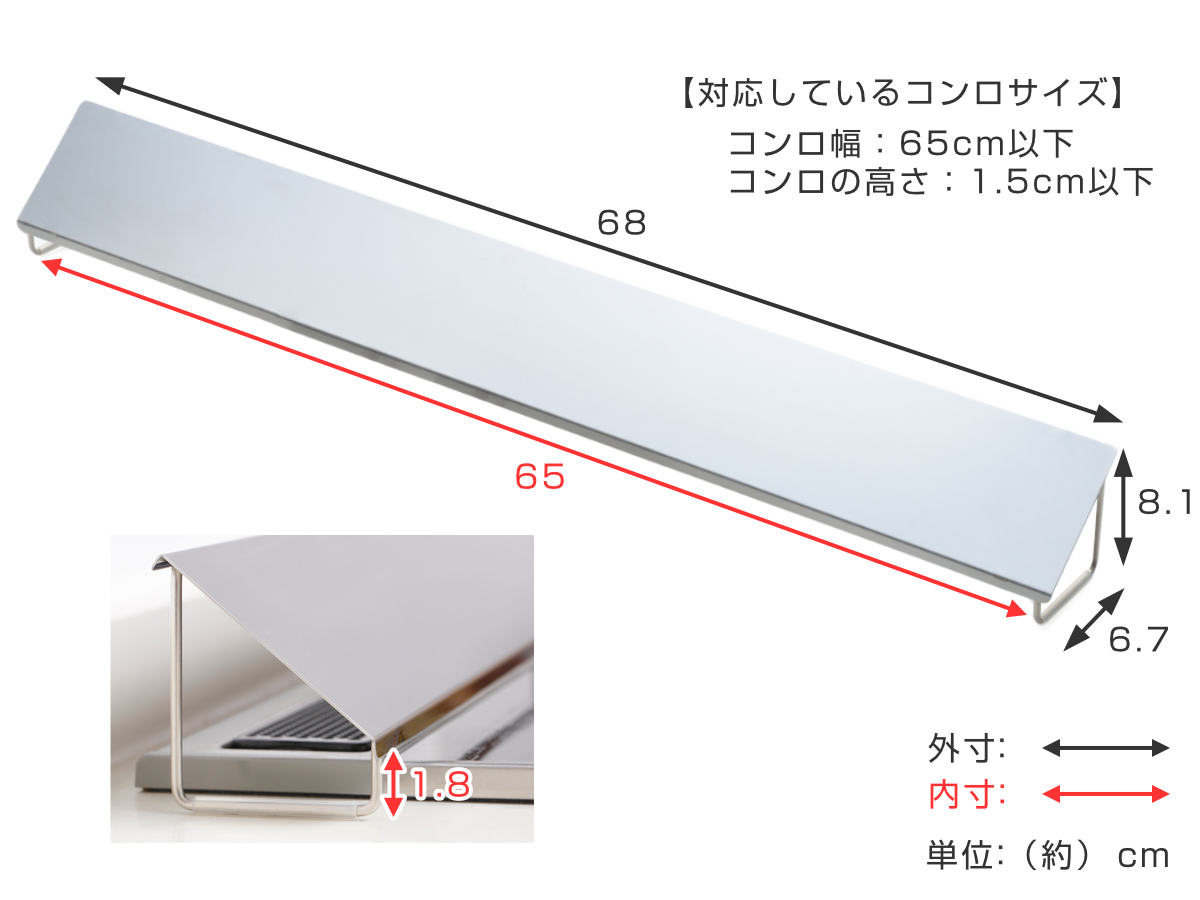 | 対応サイズ | 幅64cm、高さ1.5cm以内の排気口 |