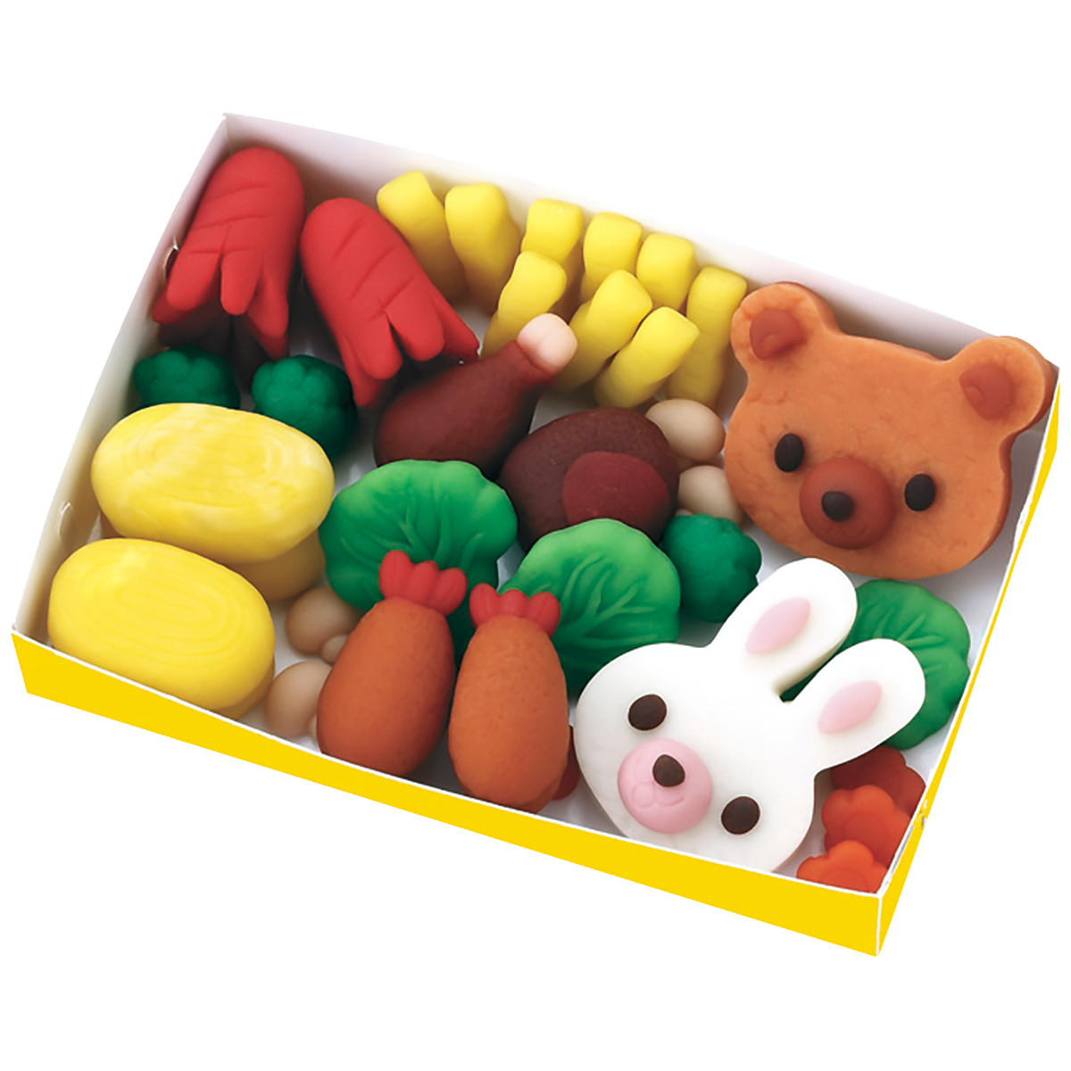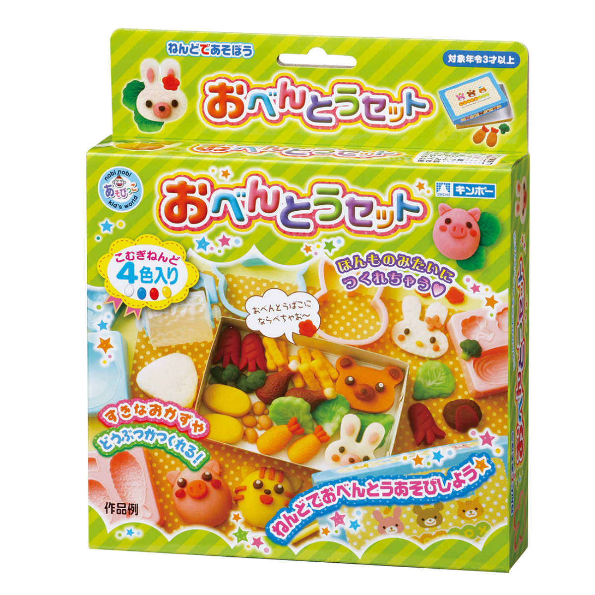 | 内容量 | 小麦ねんど4色(白、青、赤、黄)、ねんど型4個、どうぶつ型2個、ご飯型ローラー、はし、おべんとう箱、保存袋 |
